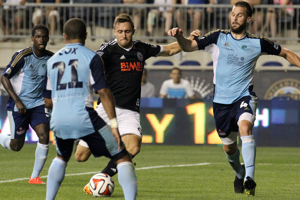 Well if you look at the first half the passing was sloppy, sluggish. We’ve had a long layoff, we’ve been off for a little bit now and, getting back and only having a day and a half or day of training to go against the Harrisburg team, it was definitely difficult. I think if we were a little cleaner with the ball in three plays in the first half we could have scored the first goal. The key in these games is to score the first goal and make them actually have to come out and play us. To their credit they sat behind the ball and they were hard to break down, and we didn’t have the quality to break them down. We were a little rusty, sloppy, but my guys fought hard in the end, they could have laid down but they didn’t, they kept pushing and got the goals.
