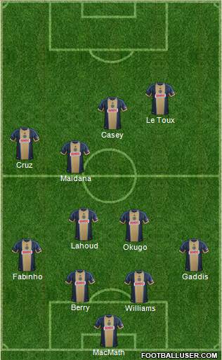 4-4-2, sometimes a 4-5-1 on the road. Often in a loose diamond with Nick LaBrocca at the point. Most dangerous moves go through Dillon Powers as a narrow right midfielder.