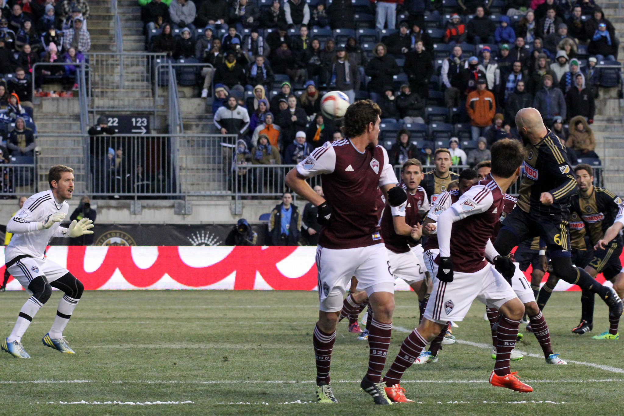 The Union’s Mark Evans checks in with capos before the first match of the season.