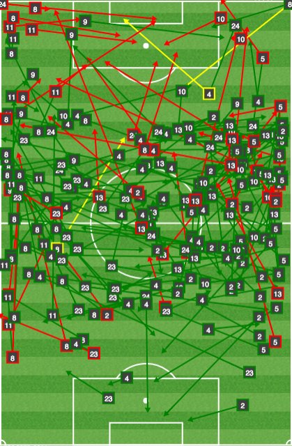 An alternative strategy is to prevent Rowe and Fagundez from cutting through the center. This means funneling play to the fullbacks or straight up the middle. However, such a plan grants space on the wing to Chris Tierney, who hits a cross as well as any defender in MLS.