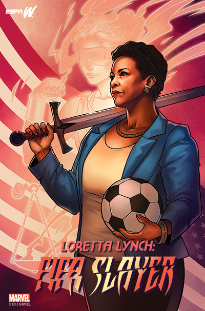 US Attorney General Loretta Lynch, or as ESPNW calls her with a little help from Marvel Comics, “FIFA Slayer.” More at Reuters.