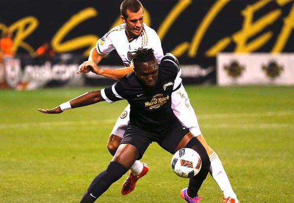 Jeff Parke battles Marco Di Vaio at Stade Saputo. The 2013 Union bagged a franchise record 12 wins but missed the playoffs by three points. Photo courtesy of Philadelphia Union.
