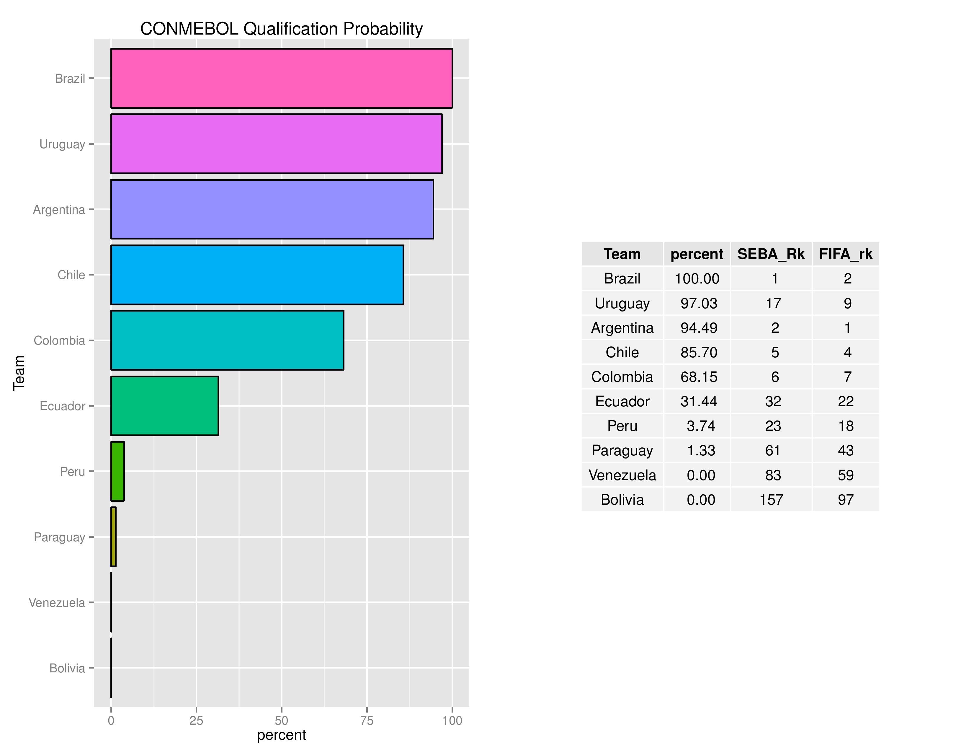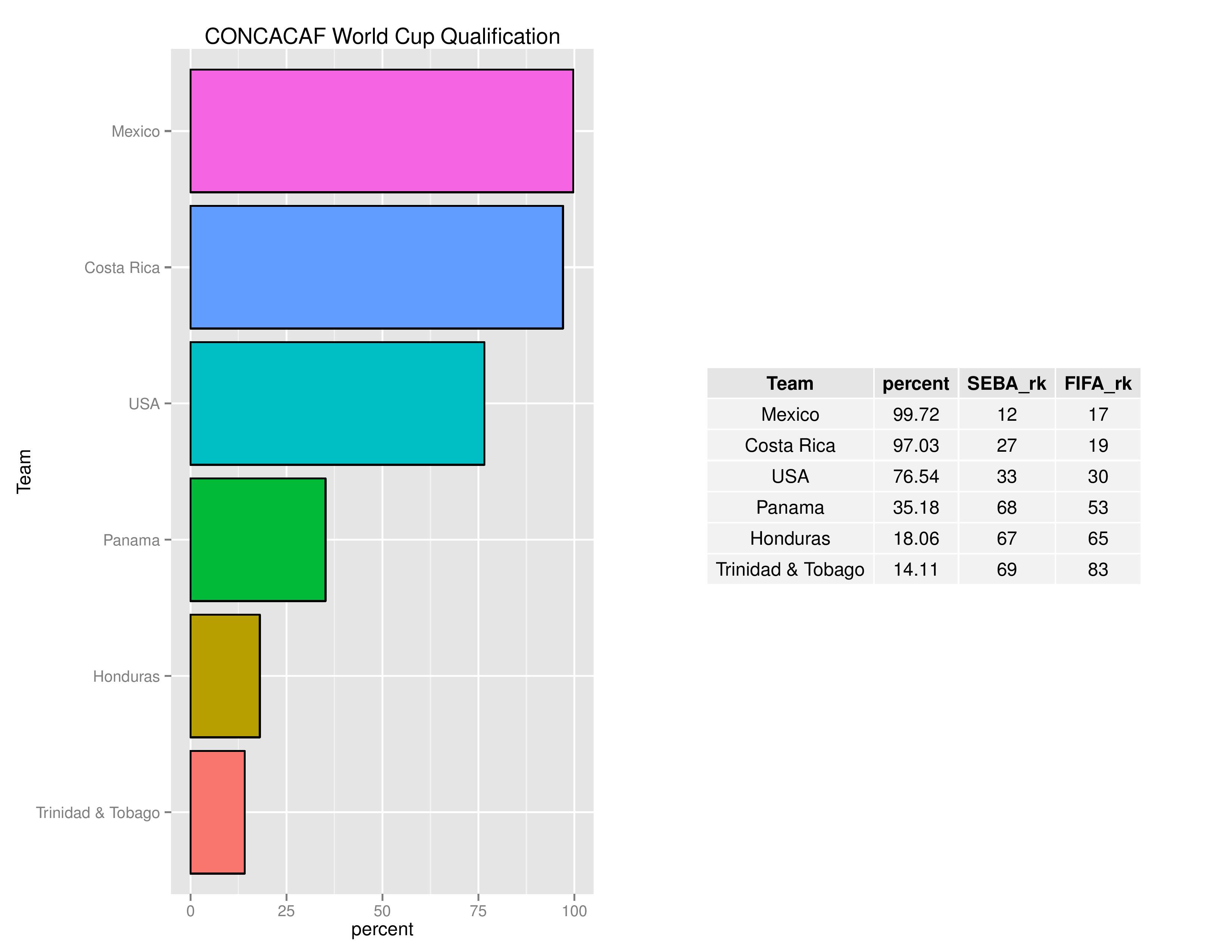 There are new features in this edition of SEBA’s international forecasts. Below the World Cup Qualification projections includes 2018 World Cup projections, FIFA rank projections, and, further below, an explanation of the FIFA ranking system and why it is different than SEBA’s.