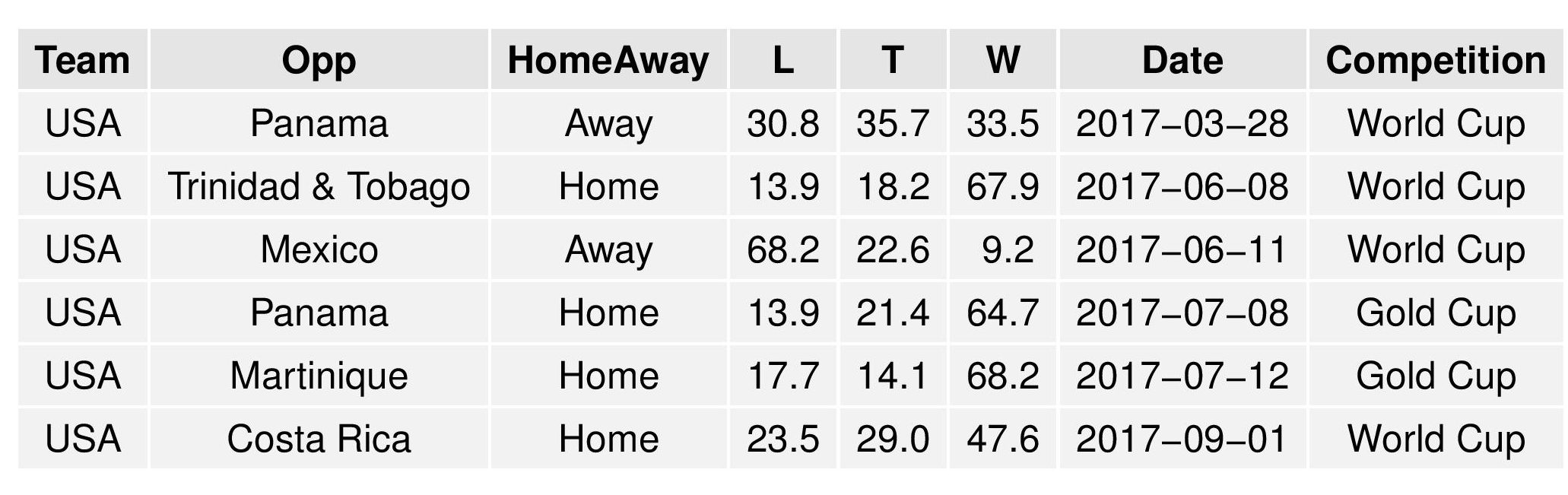 Finally, the following shows the probabilities of results for upcoming USA matches.