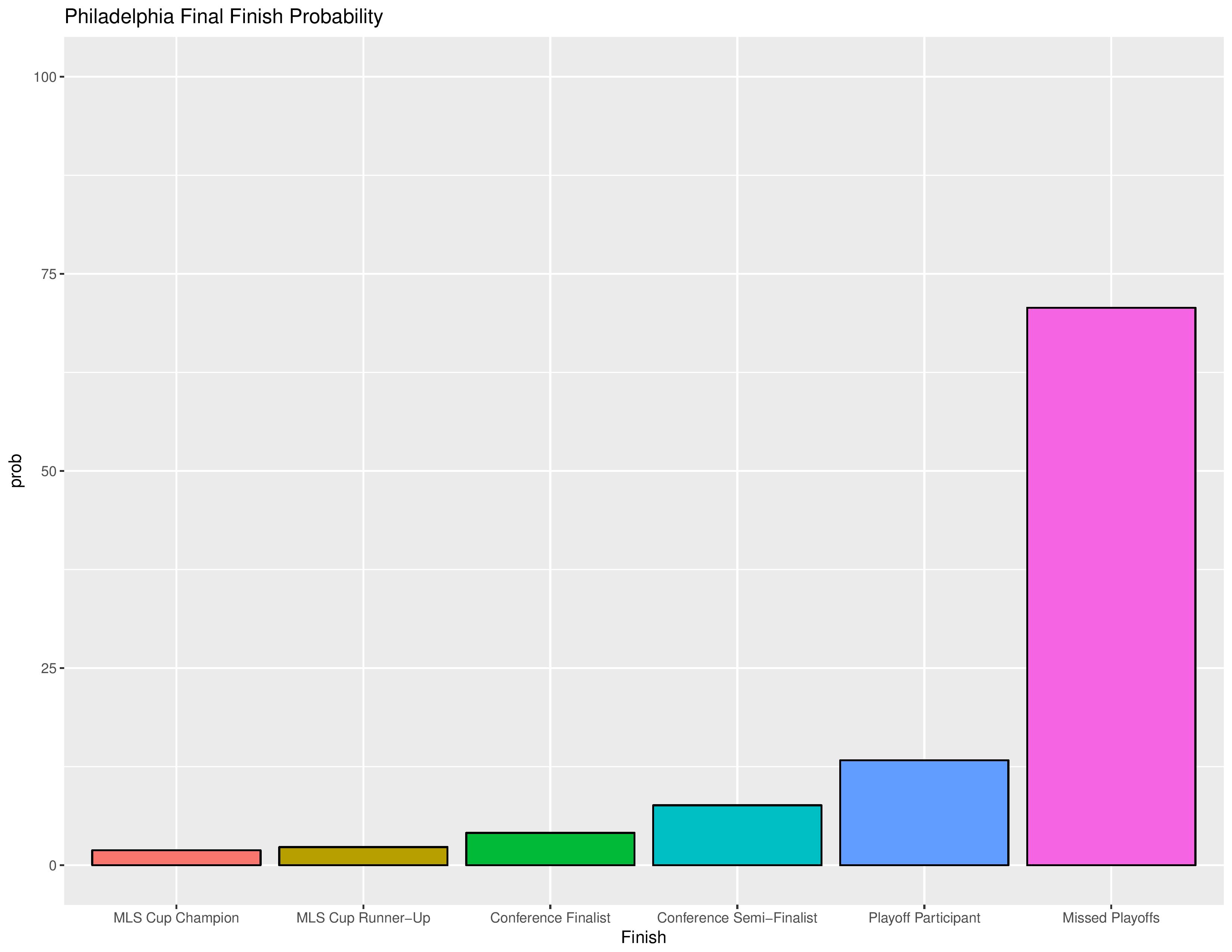 Philadelphia’s odds to win the Supporters’ Shield increase from practically 0% to 0.4%.