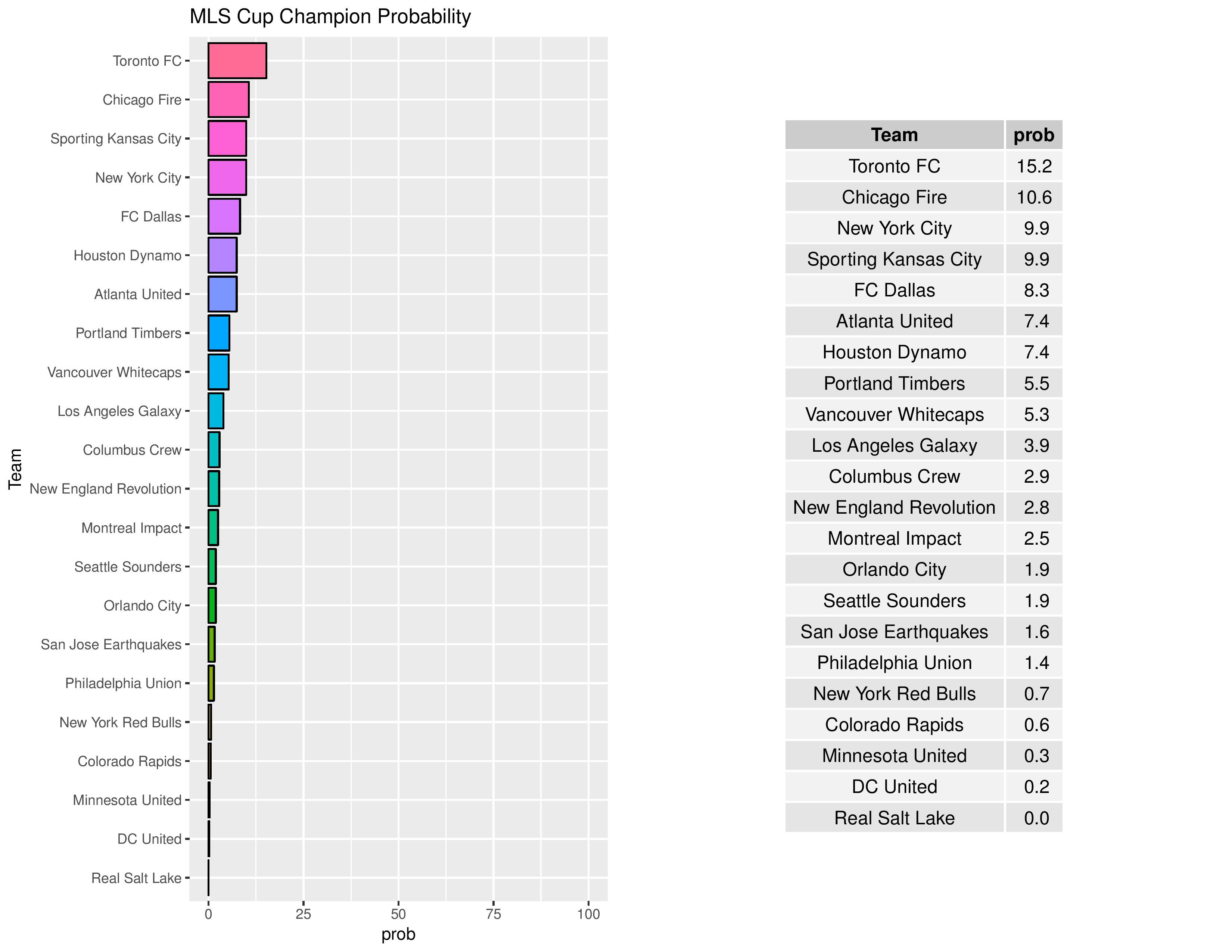 The Union’s chances of winning the MLS Cup have decreased from 2.2% to 1.4%.