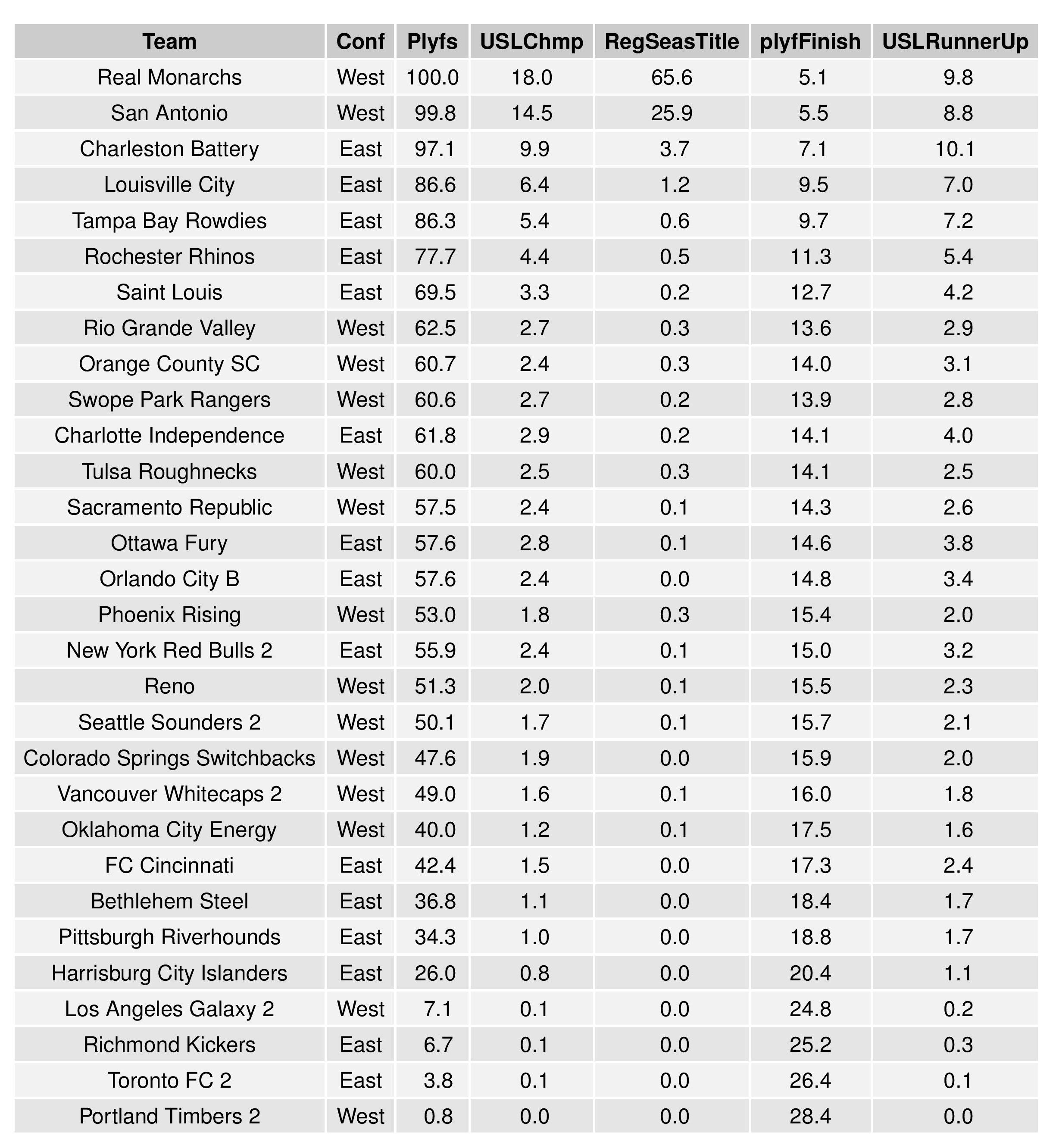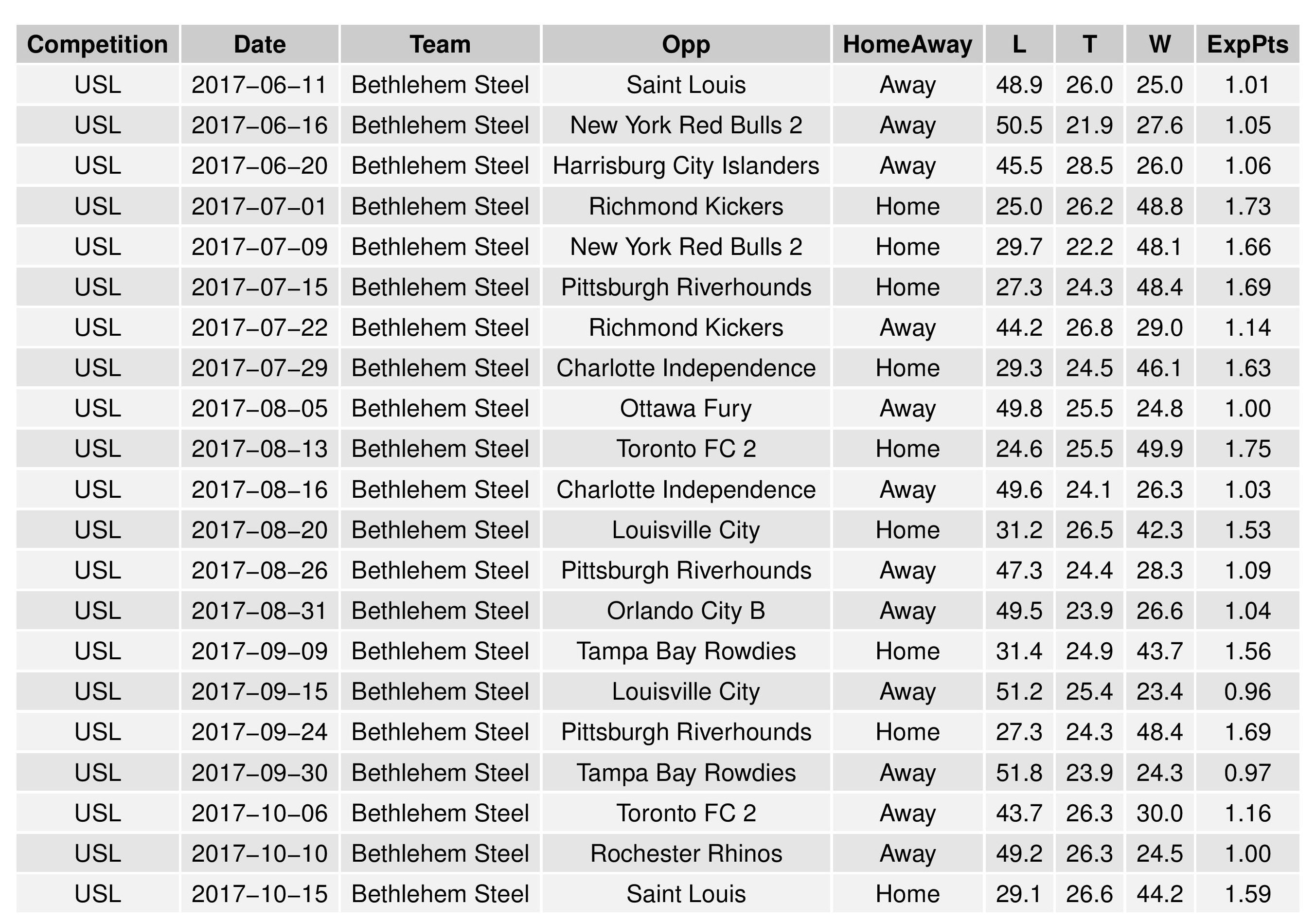 This chart is the same as that in the MLS forecast (except for USL matches instead of MLS).