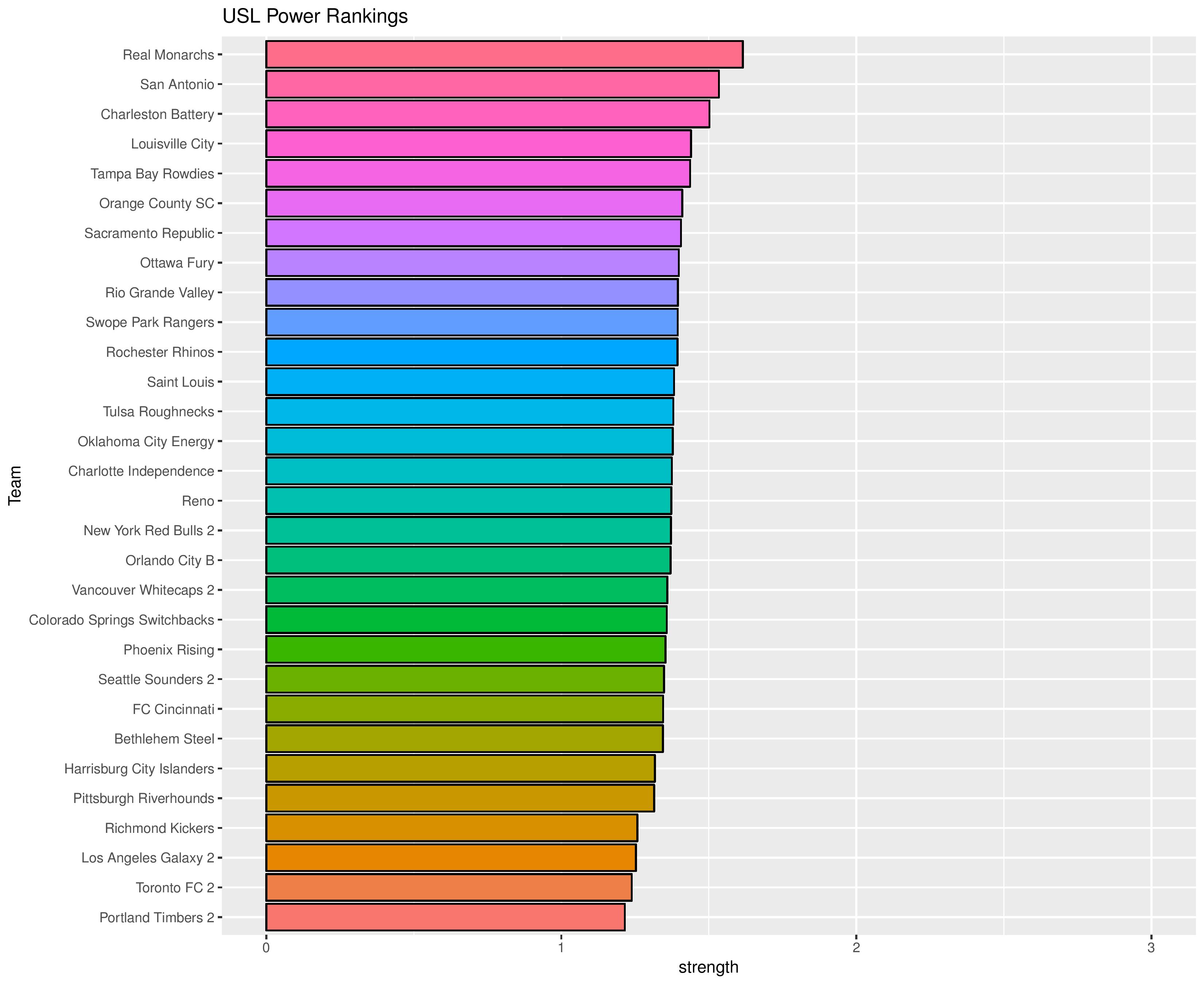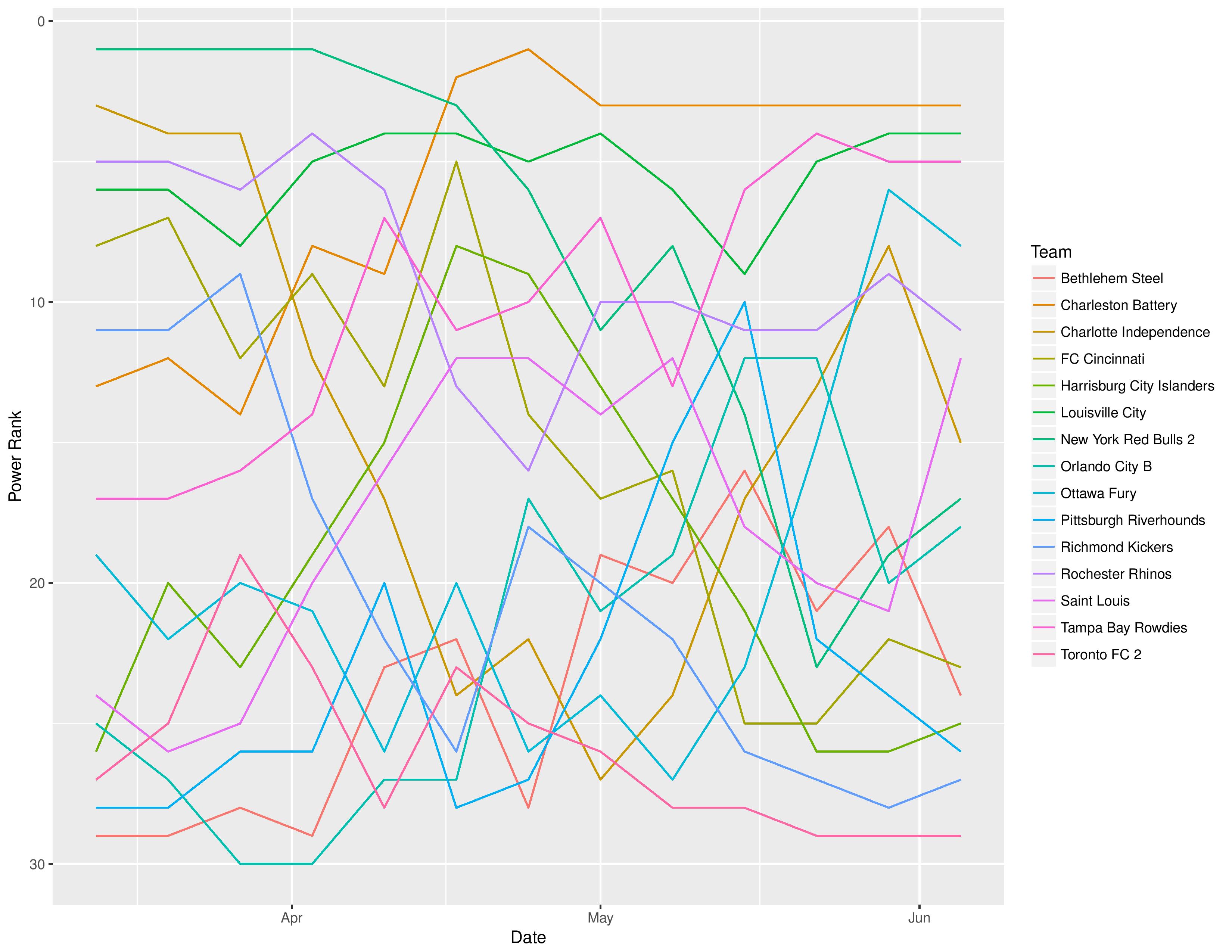 The following shows the evolution of SEBA’s power rankings for the USL East over time.