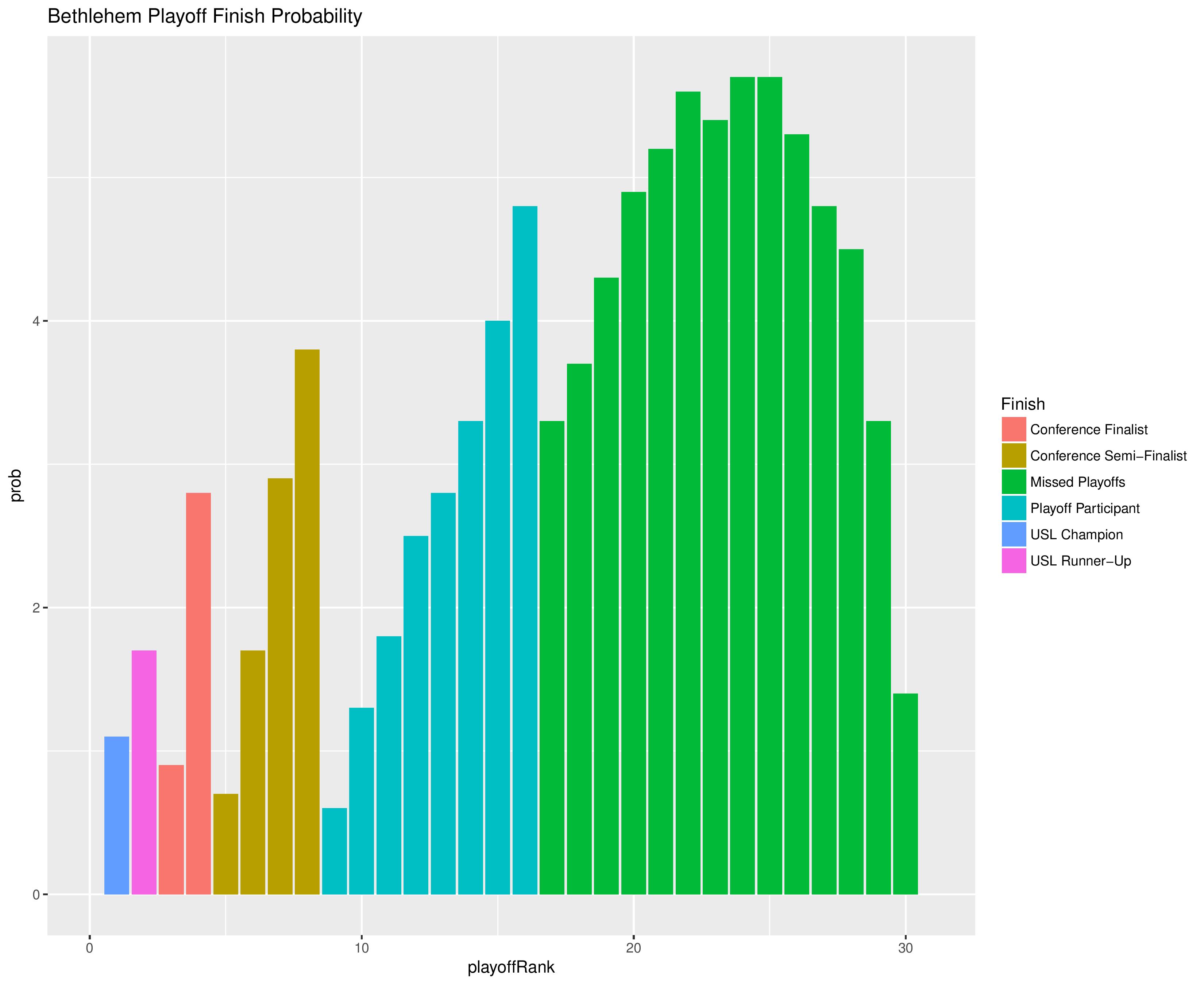 The following shows the probability of each post-playoff ranking finish.