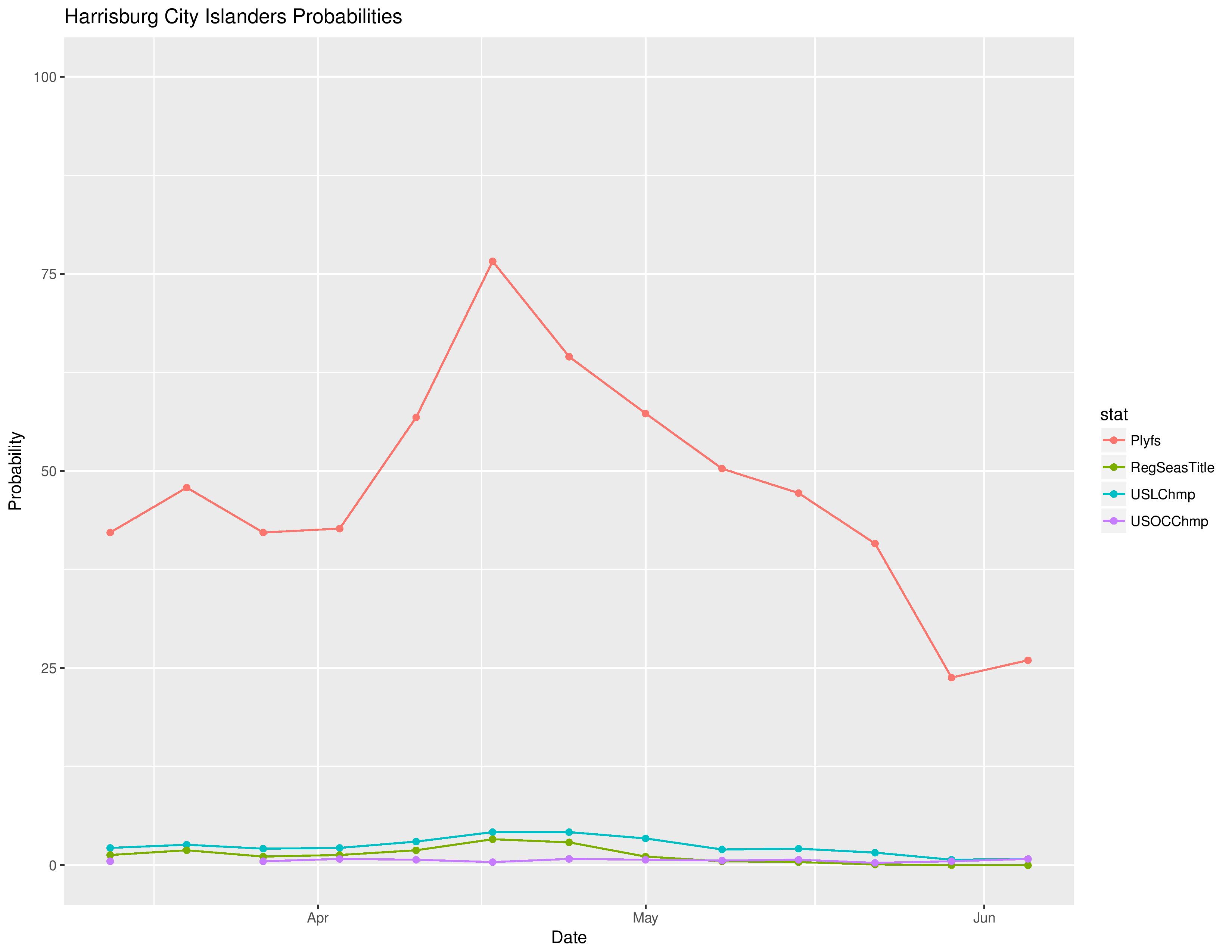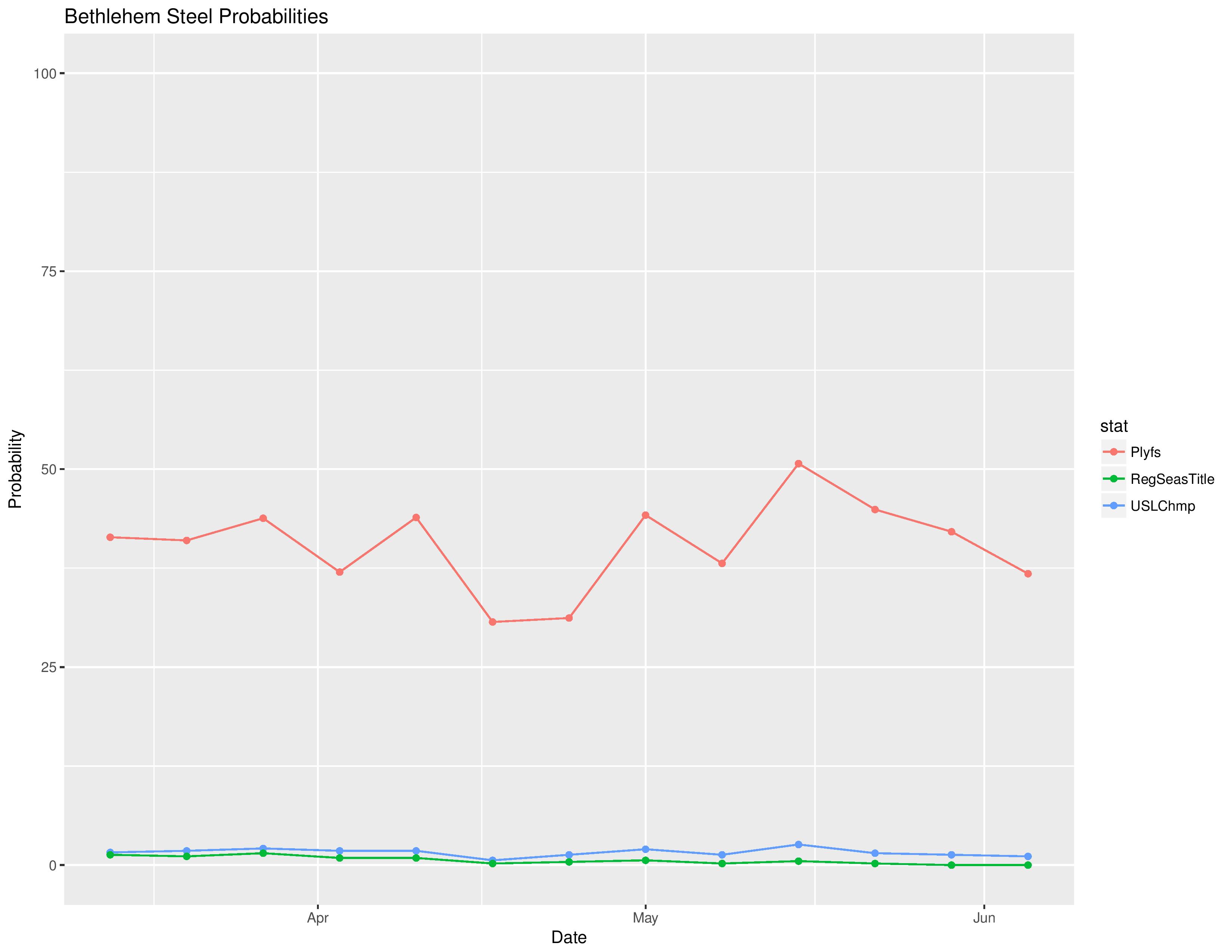 Bethlehem’s odds at becoming the USL Champion decreased from 1.3% to 1.1% while Harrisburg City’s increased from 0.7% to 0.8%: