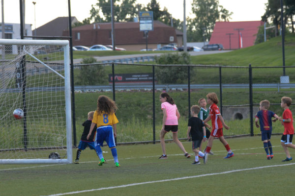 Kids enjoy kicking the ball around postgame.