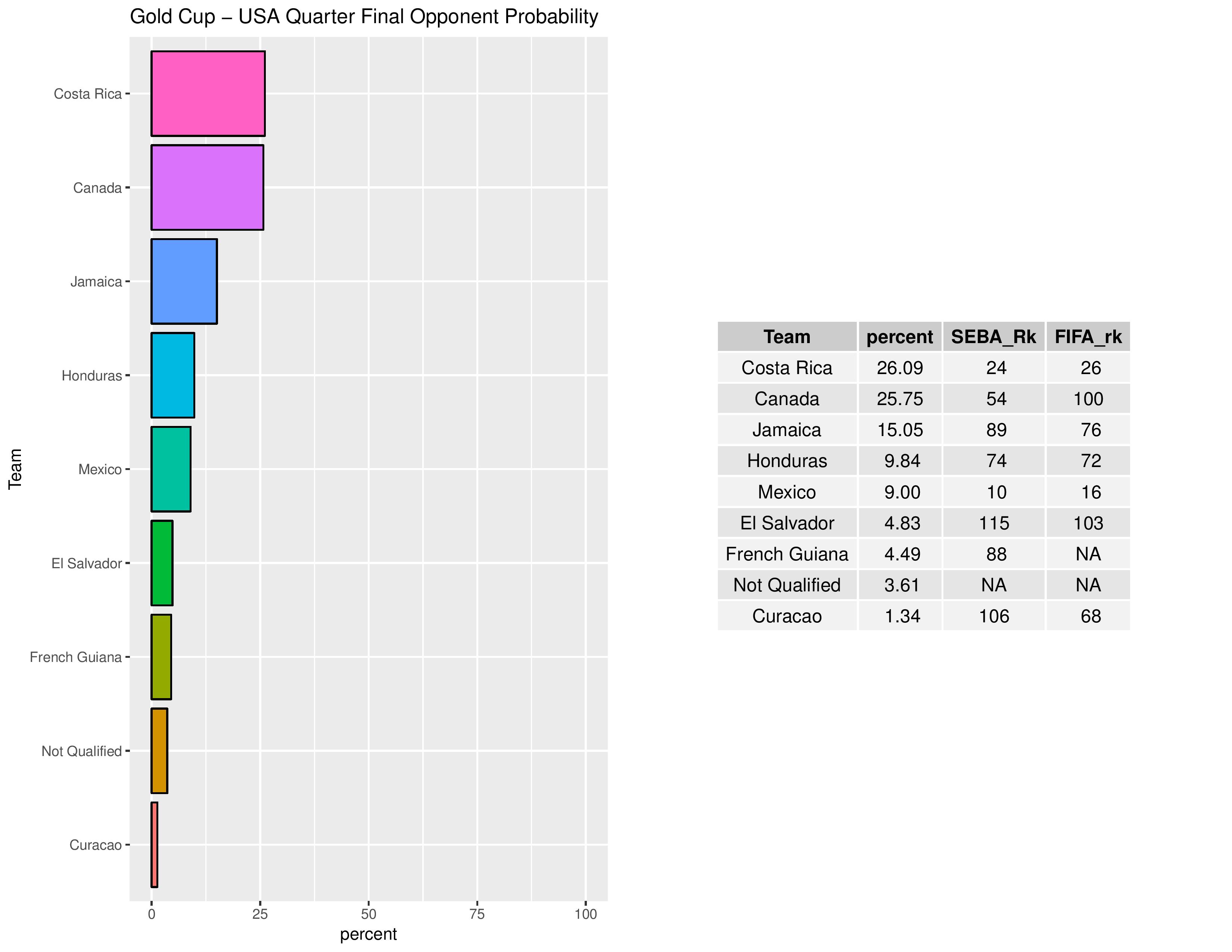 The following shows the probabilities of the USA’s quarterfinal opponent.