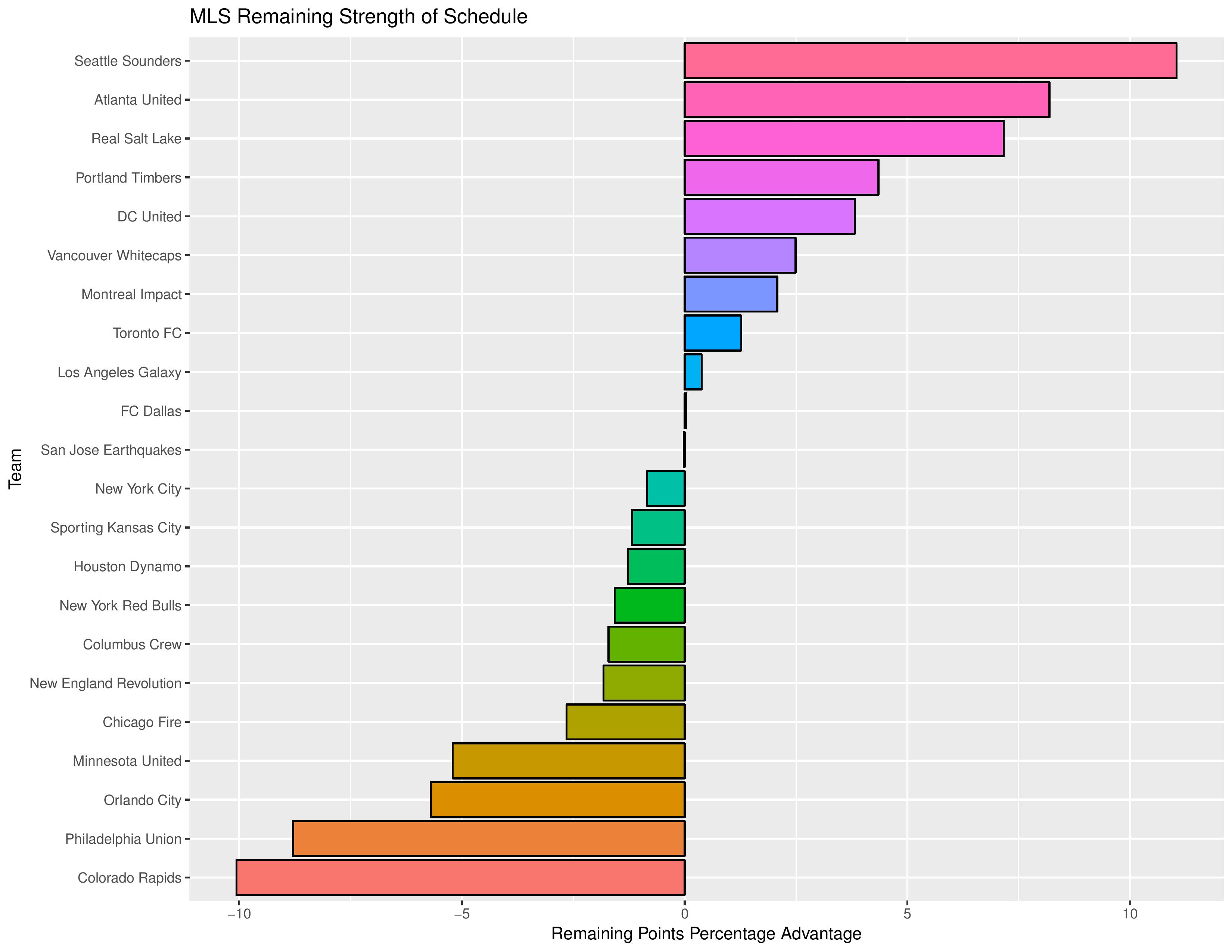 As a new feature, we can also show how the Remaining Strength of Schedule affects each team.