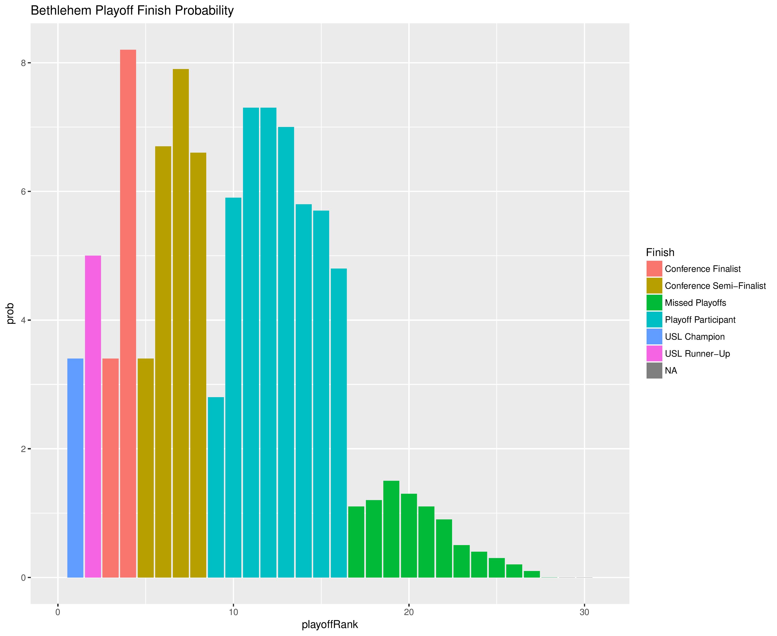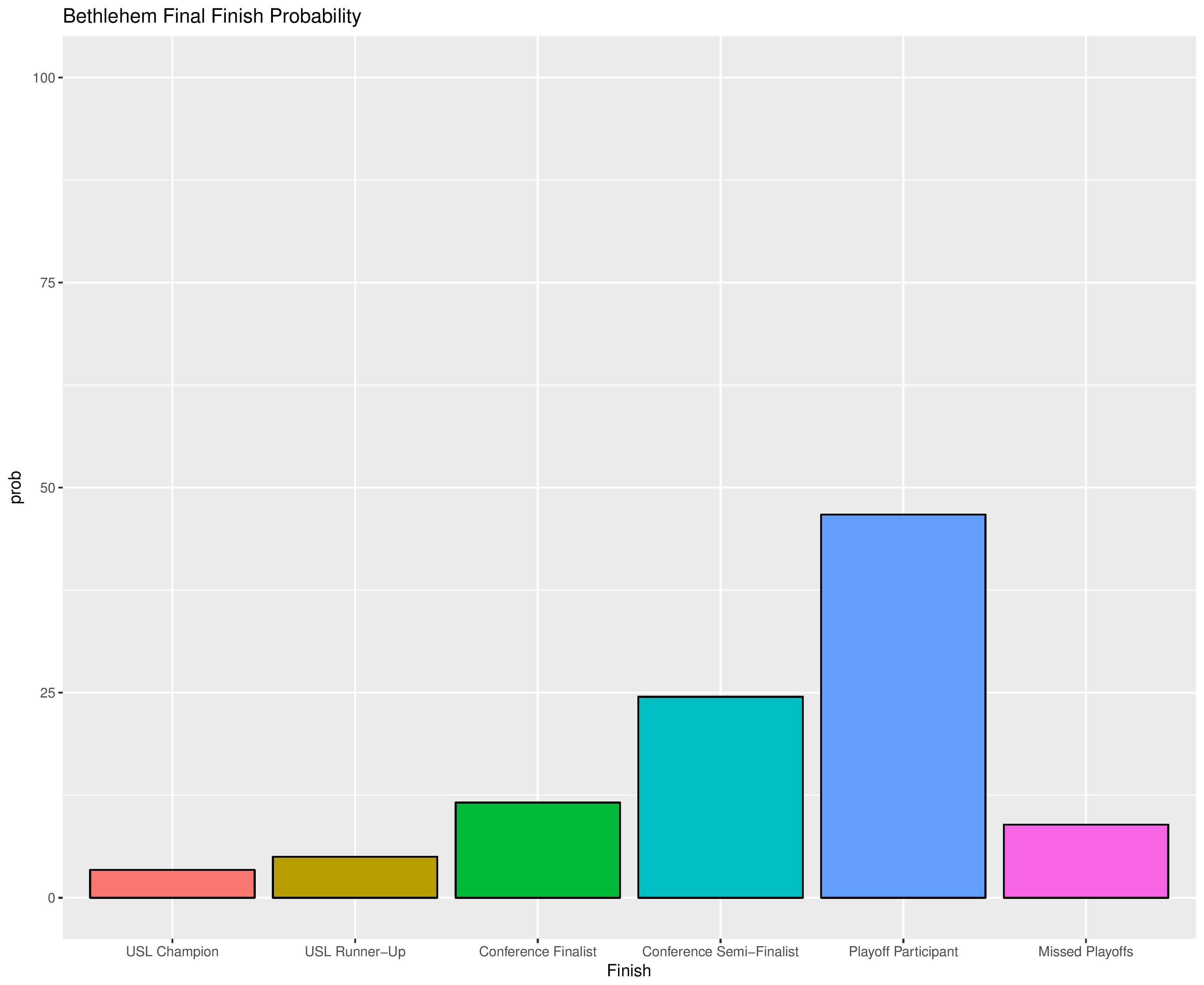 Bethlehem’s odds at the Regular Season Title remains at 0.1%.