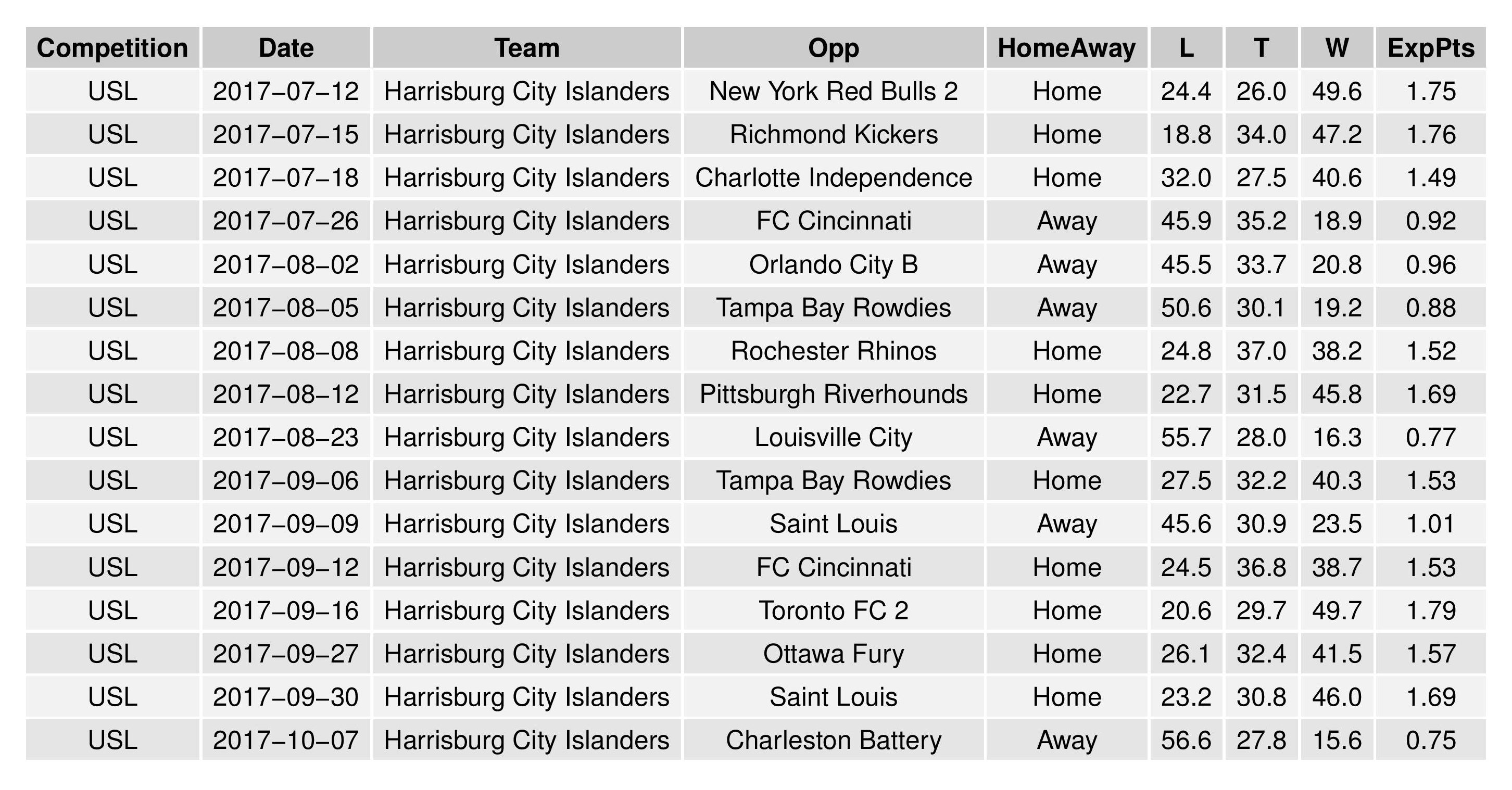 This chart is the same as that in the MLS forecast (except for USL matches instead of MLS).