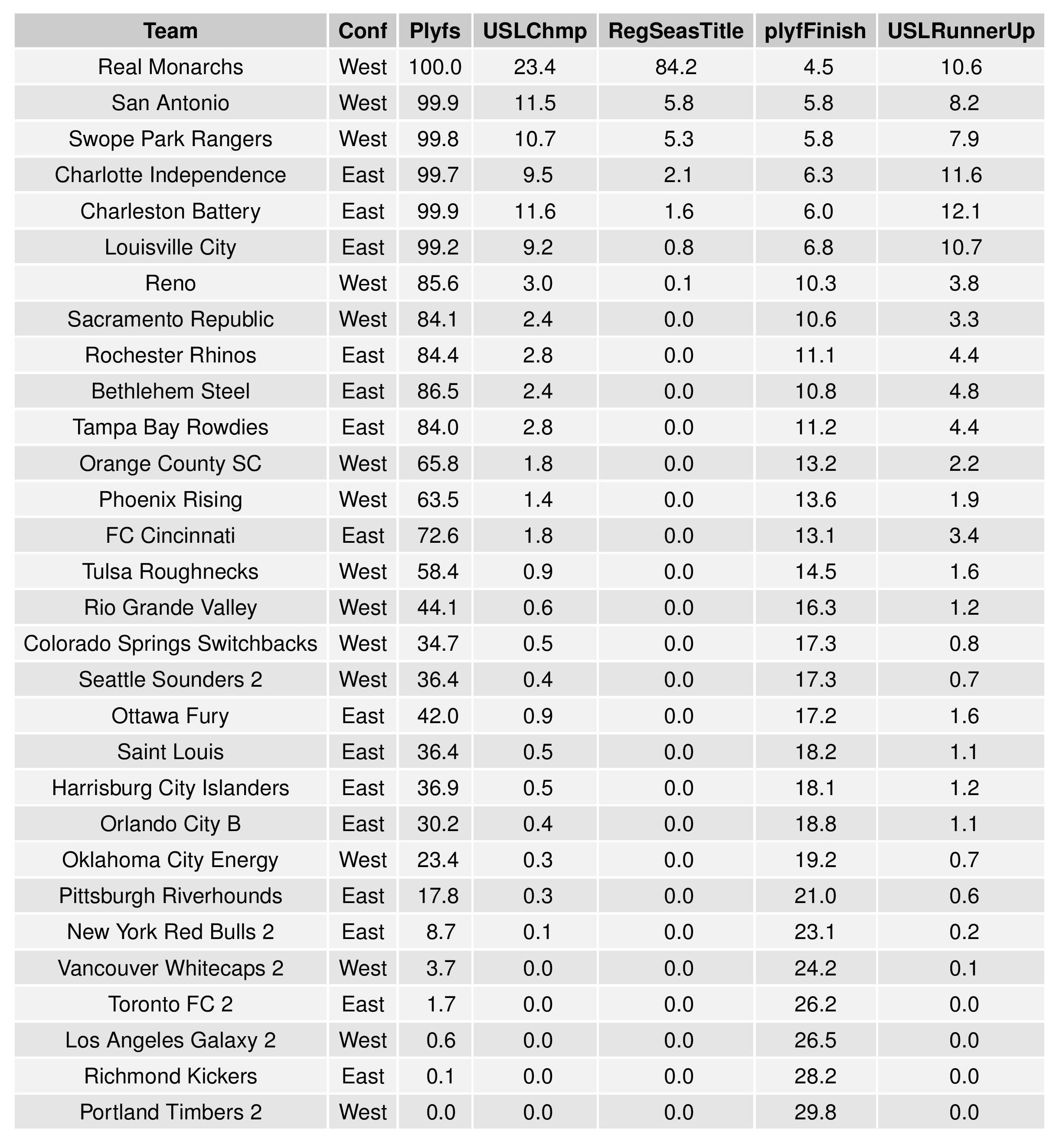 This chart is the same as that in the MLS forecast (except for USL matches instead of MLS).