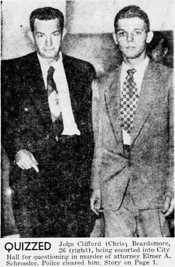 Newspaper reports indicated Schroeder was last seen alive around midnight on Saturday, Sep. 19, 1953, at a downtown bar on Quince Street near Walnut Street, accompanied by another man known to the witness.