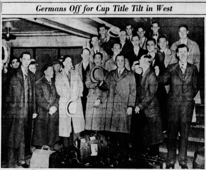 The success of Schroeder’s amateurs meant the US team for the 1936 Olympics in Berlin included nine players from the German Americans, but the team was still short of the money needed to finance the trip. At the annual USFA meeting just weeks before the team was set to depart for the Games, a speech by Schroeder proved to make the difference, the Pittsburgh Press reporting the “masterful portrayal of his subject swung a rather hesitant, and in some quarters defiant meeting, into contributing $2,000 towards the cost of sending an Olympic soccer team to Berlin.”[34] Schroeder was again named manager of the team and, once again, the tournament utilized a knockout format. Unfortunately for the U.S. team, they also were once again paired with Italy for their first game and lost, this time 1-0, in a game marked by rough play by the Italian side.[35]