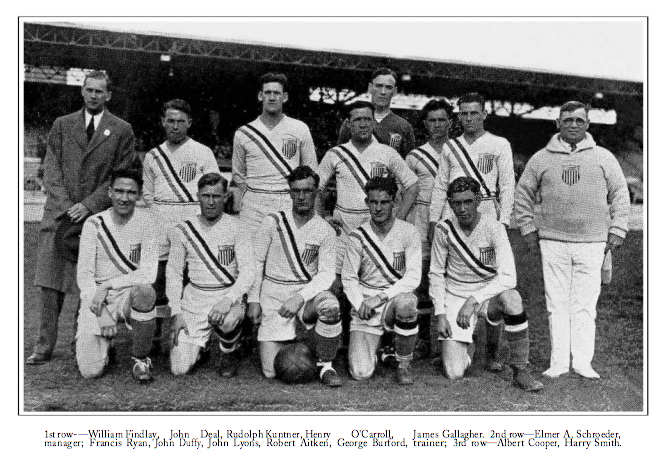 [14] Elmer A. Schroeder, “Report of Manager, Soccer Team,” American Olympic Committee Report: Ninth Olympic Games, Amsterdam, Holland, 1928, (New York: American Olympic Committee, 1928), 271-282. Among the recommendations Schroeder made after the Olympics was increasing the number of players sent to future games from sixteen to twenty-two “to facilitate training, to permit exhibition games to be played frequently and to guard against weakening the team by injuries”.