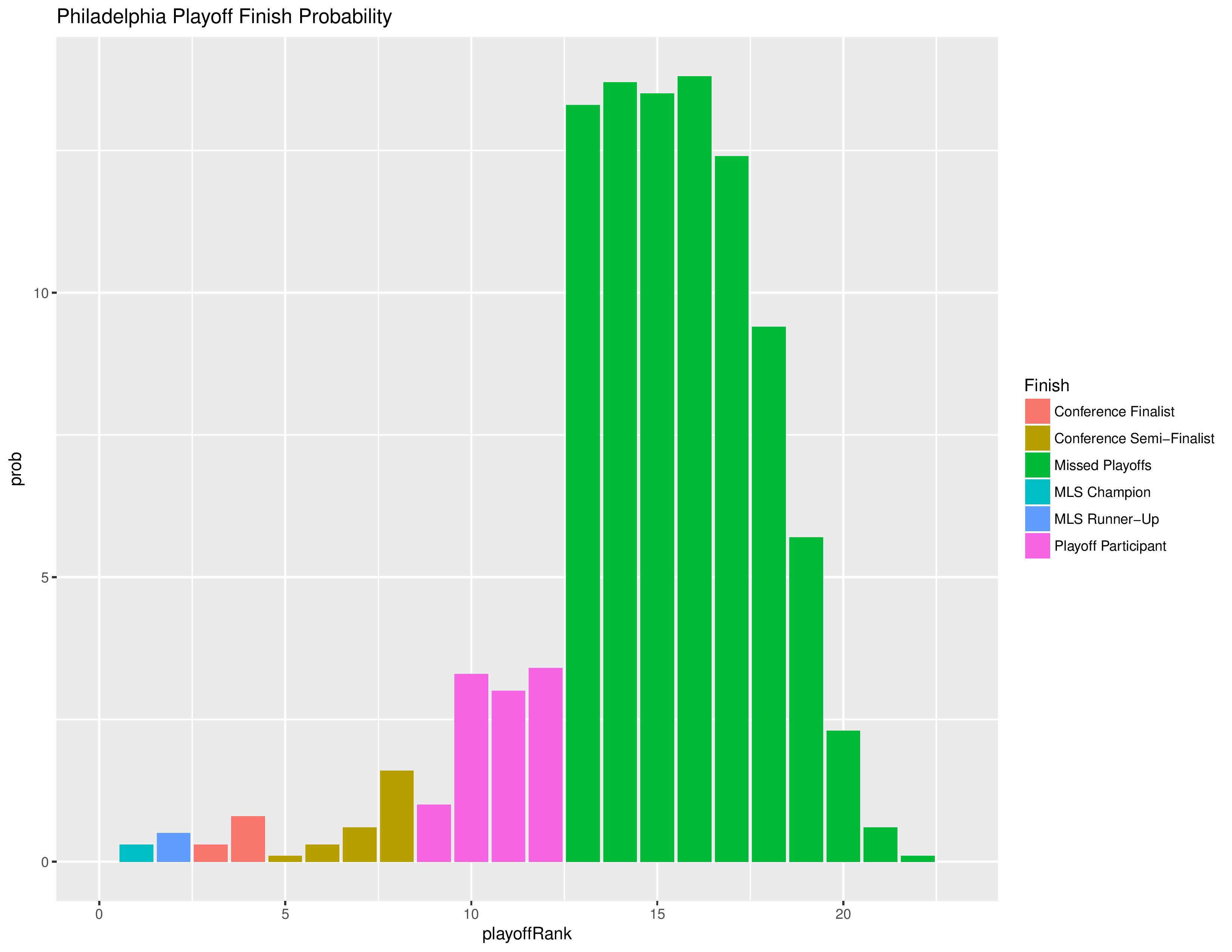The following shows the probability of each post-playoff ranking finish: