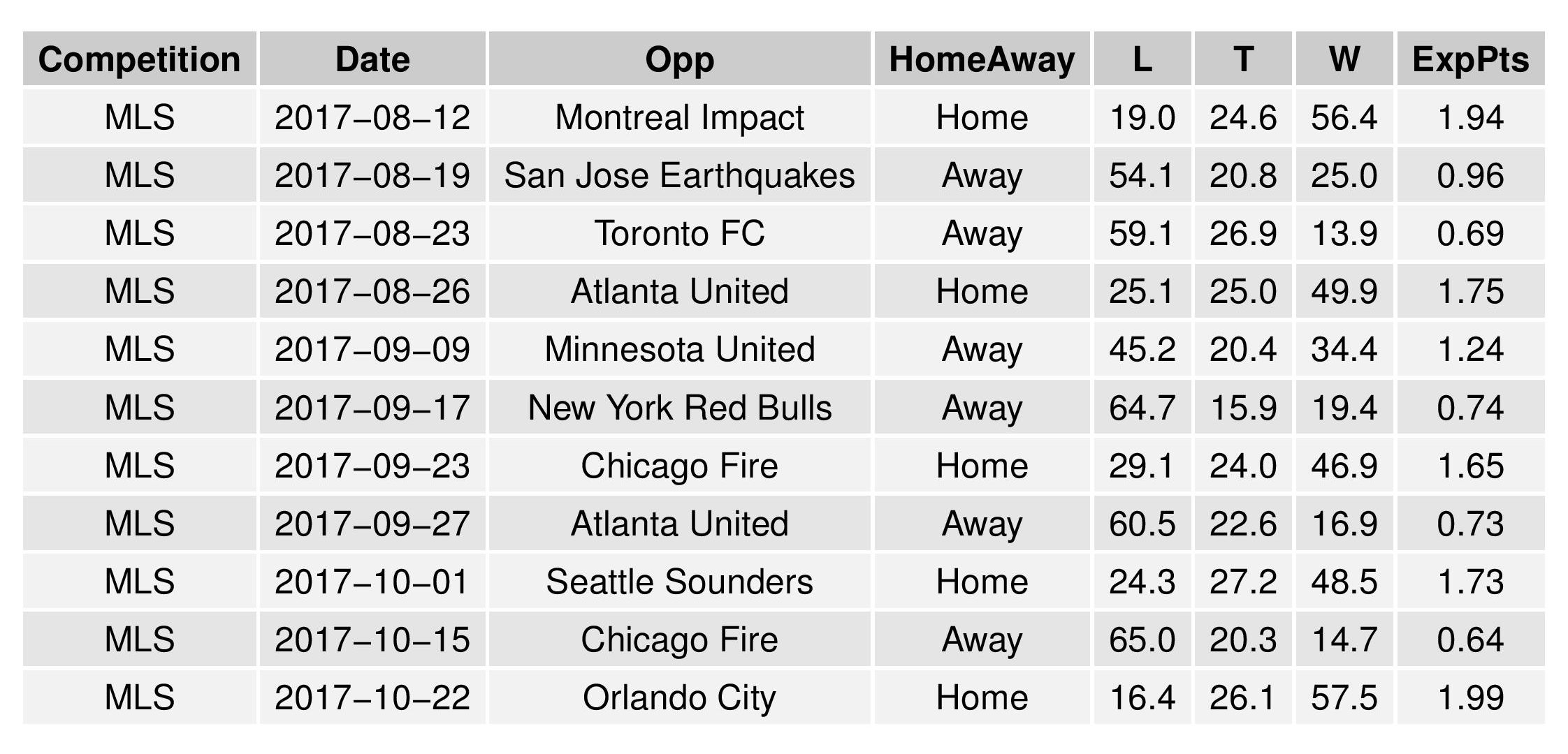 This chart is the same as that in the MLS forecast (except for USL matches instead of MLS).