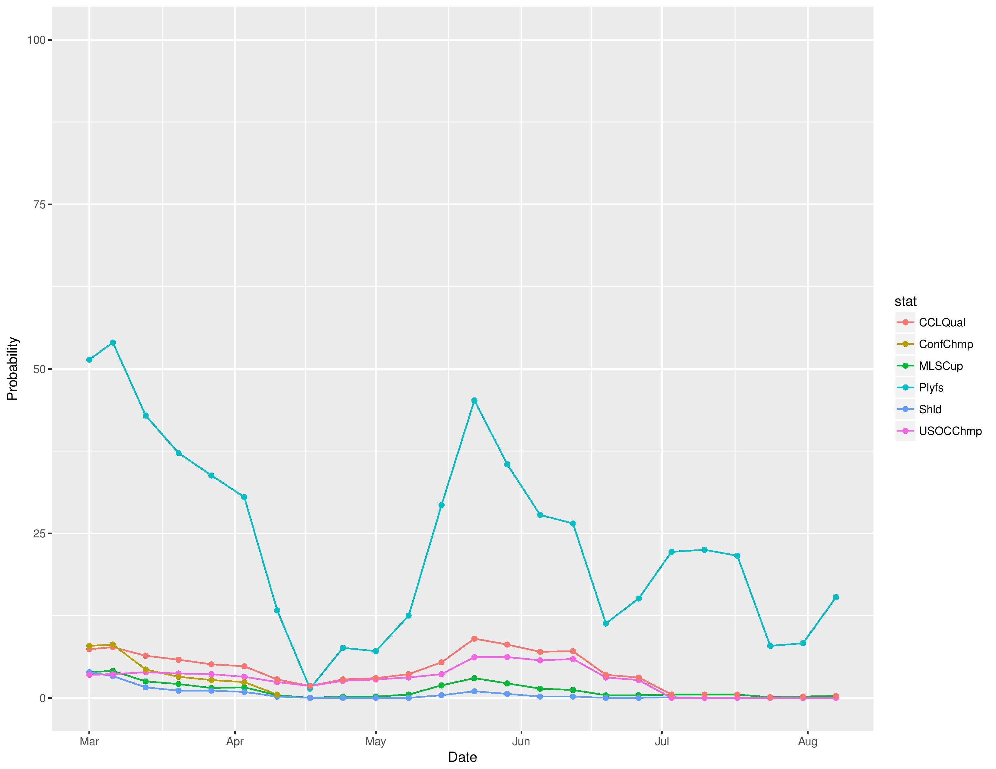 Philadelphia’s chances for qualifying in 2017 for the 2019 edition of the CONCACAF Champions League have increased from 0.2% to 0.3%.