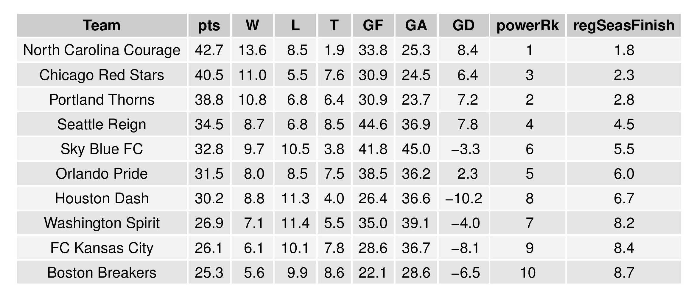 The “Power Rankings” we concoct are the “strength” of the team according to its competitive expectations. They are computed by forecasting the expected points (3 x win probability + 1 x draw probability) against every other MLS team – both home and away – and taking the average per team.