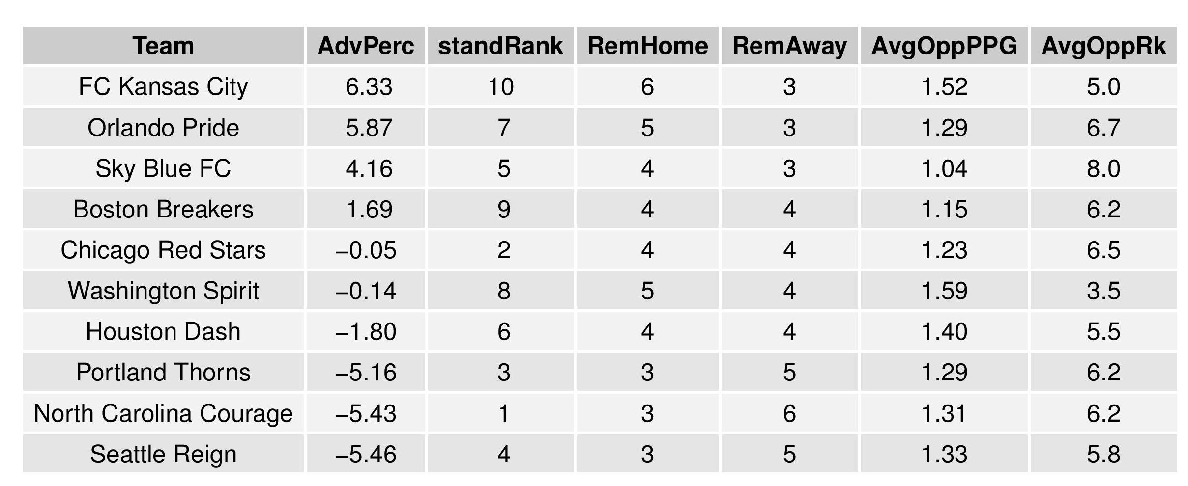 We can also show how the Remaining Strength of Schedule affects each team.