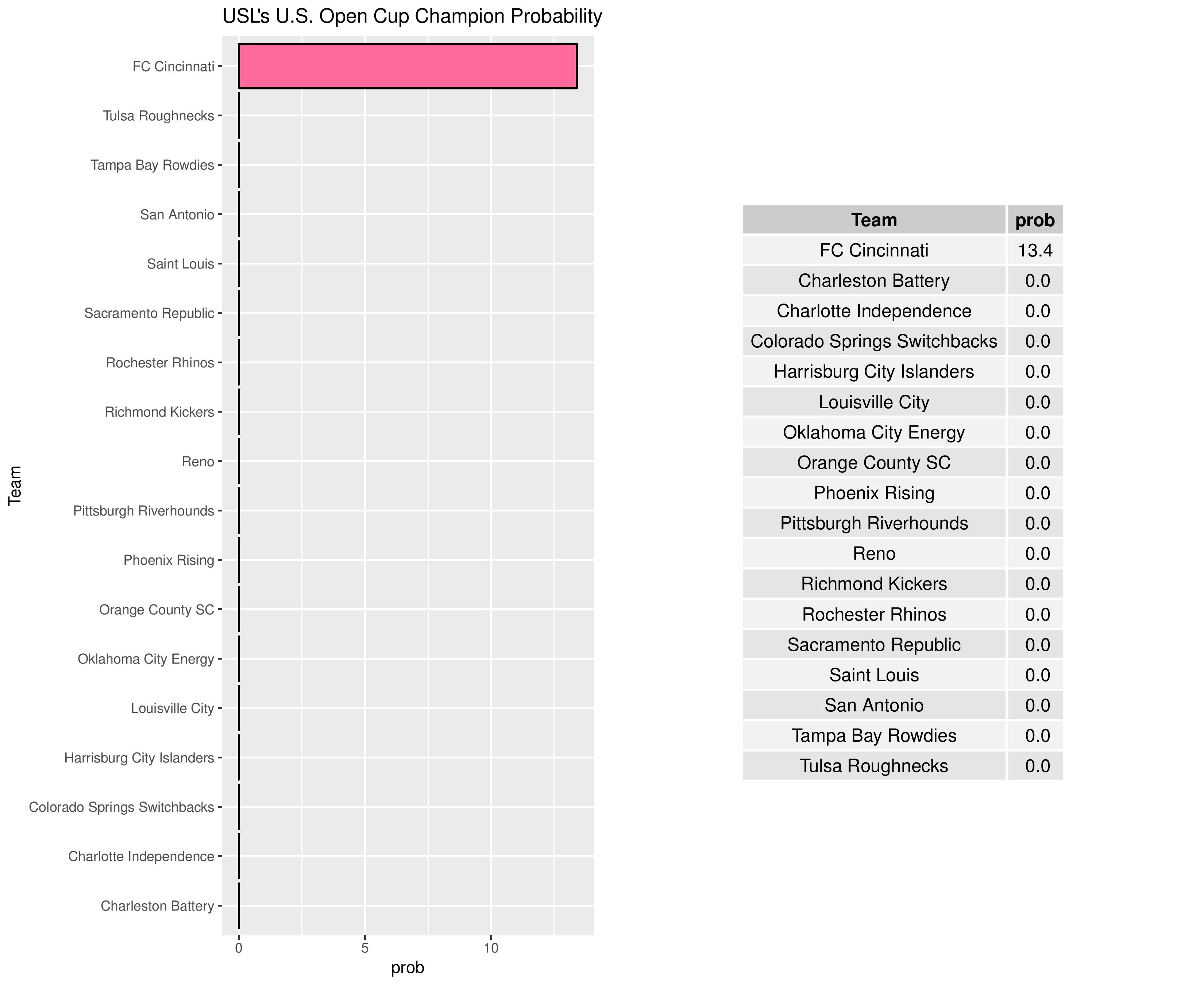 The USOC odds for USL clubs alone are as follows. FC Cincinnati is the lone remaining USL club.