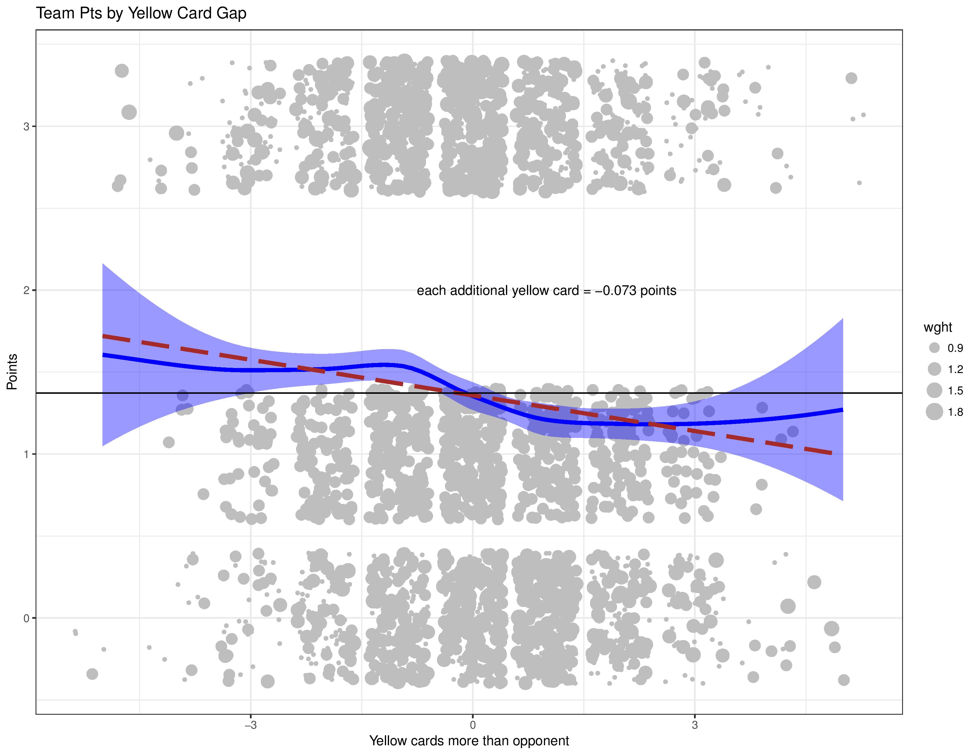 Next is points against the amount of extra yellow cards a team receives over their opponent.