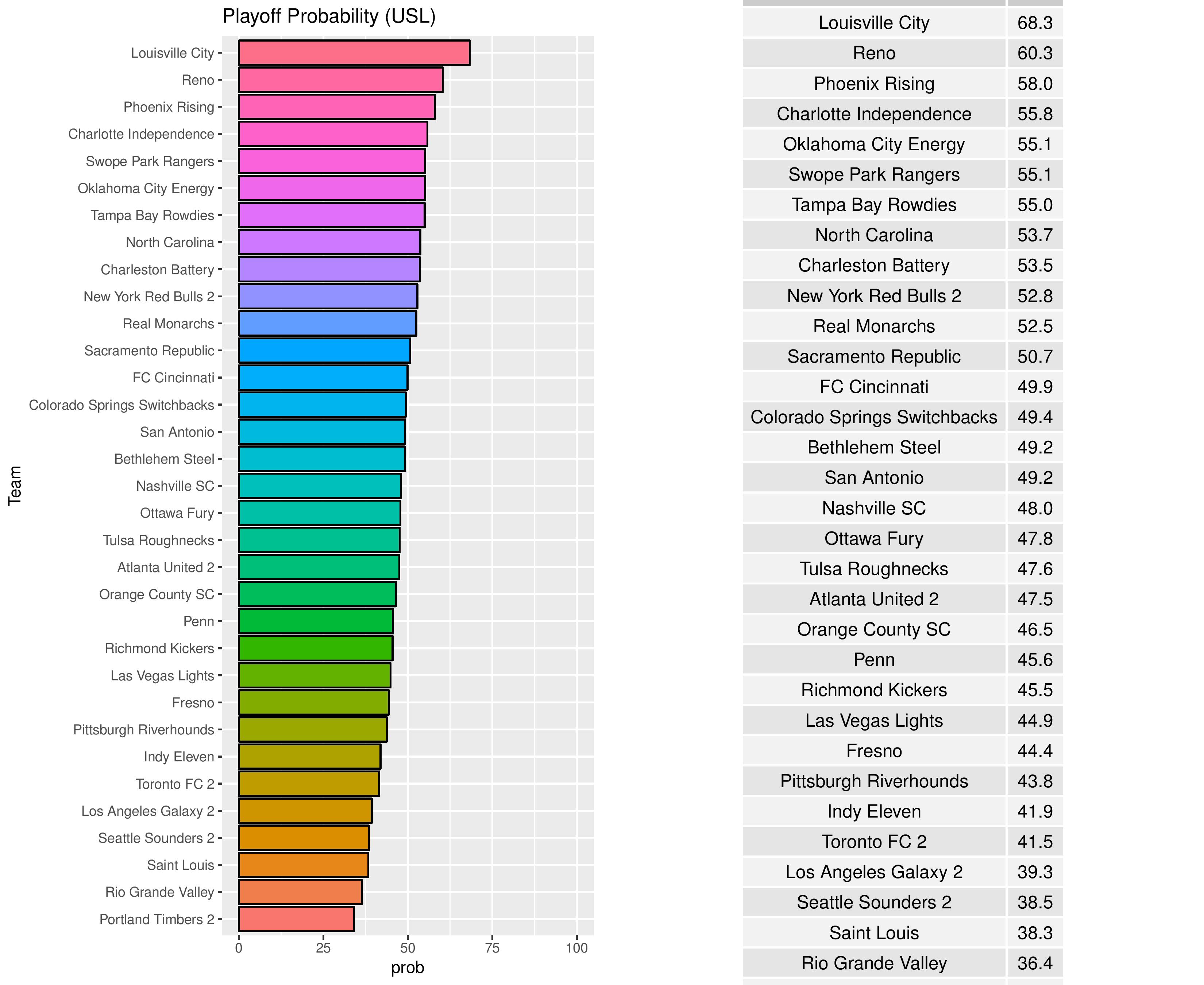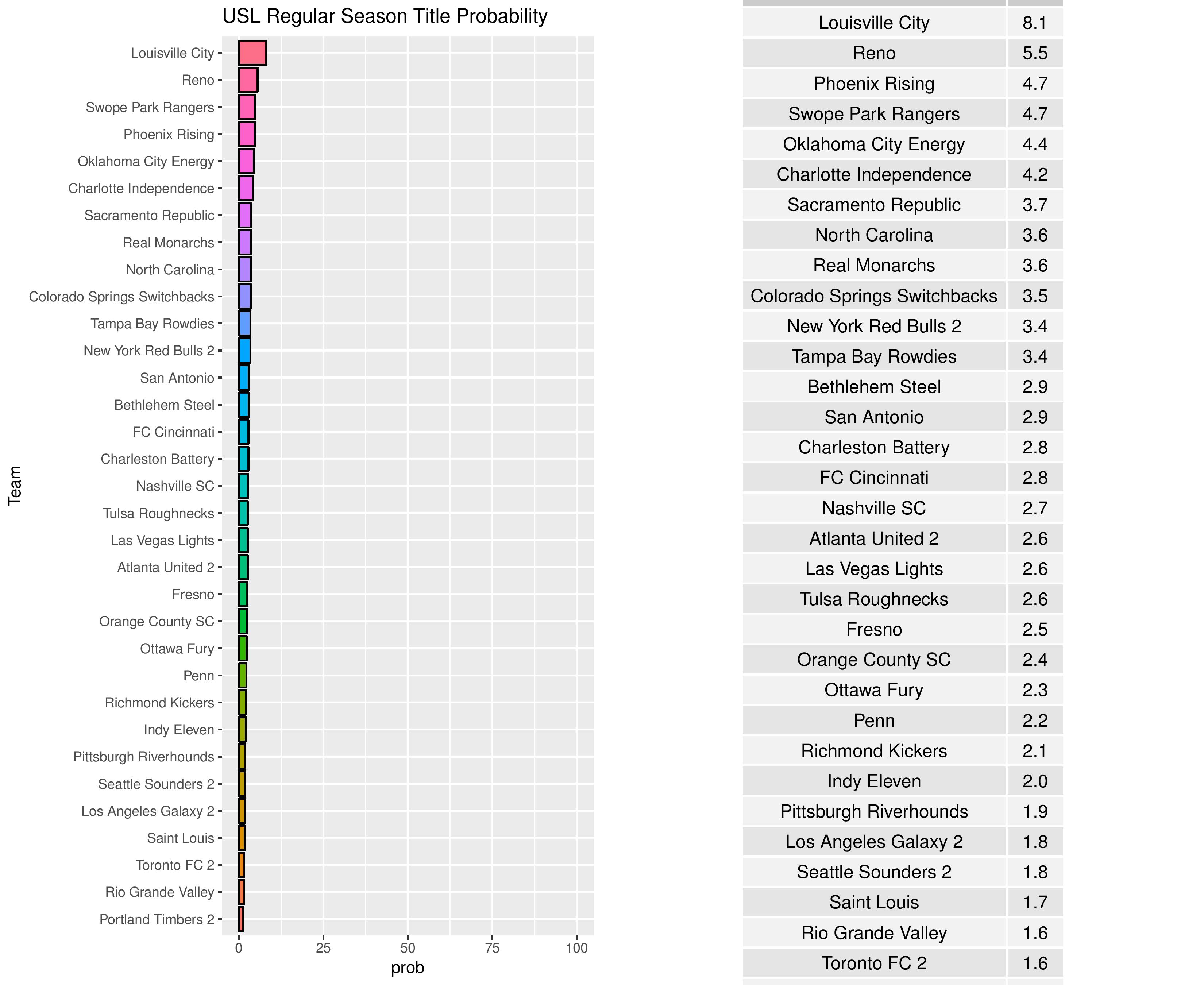 We give Bethlehem a 2.9% chance of claiming the USL regular season title.