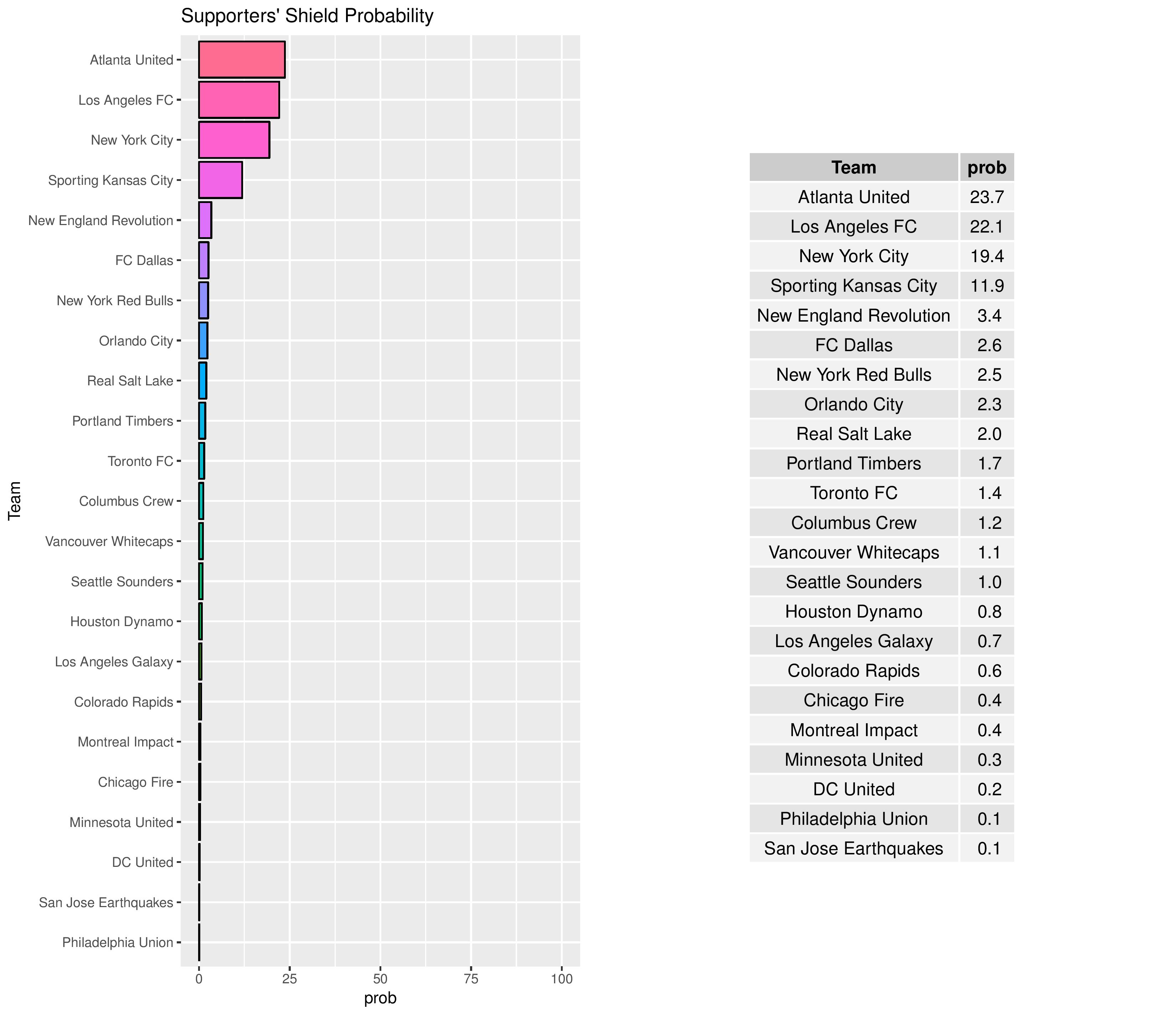 Philadelphia decreased from a 0.3% to a 0.1% chance of winning the Supporters’ Shield.
