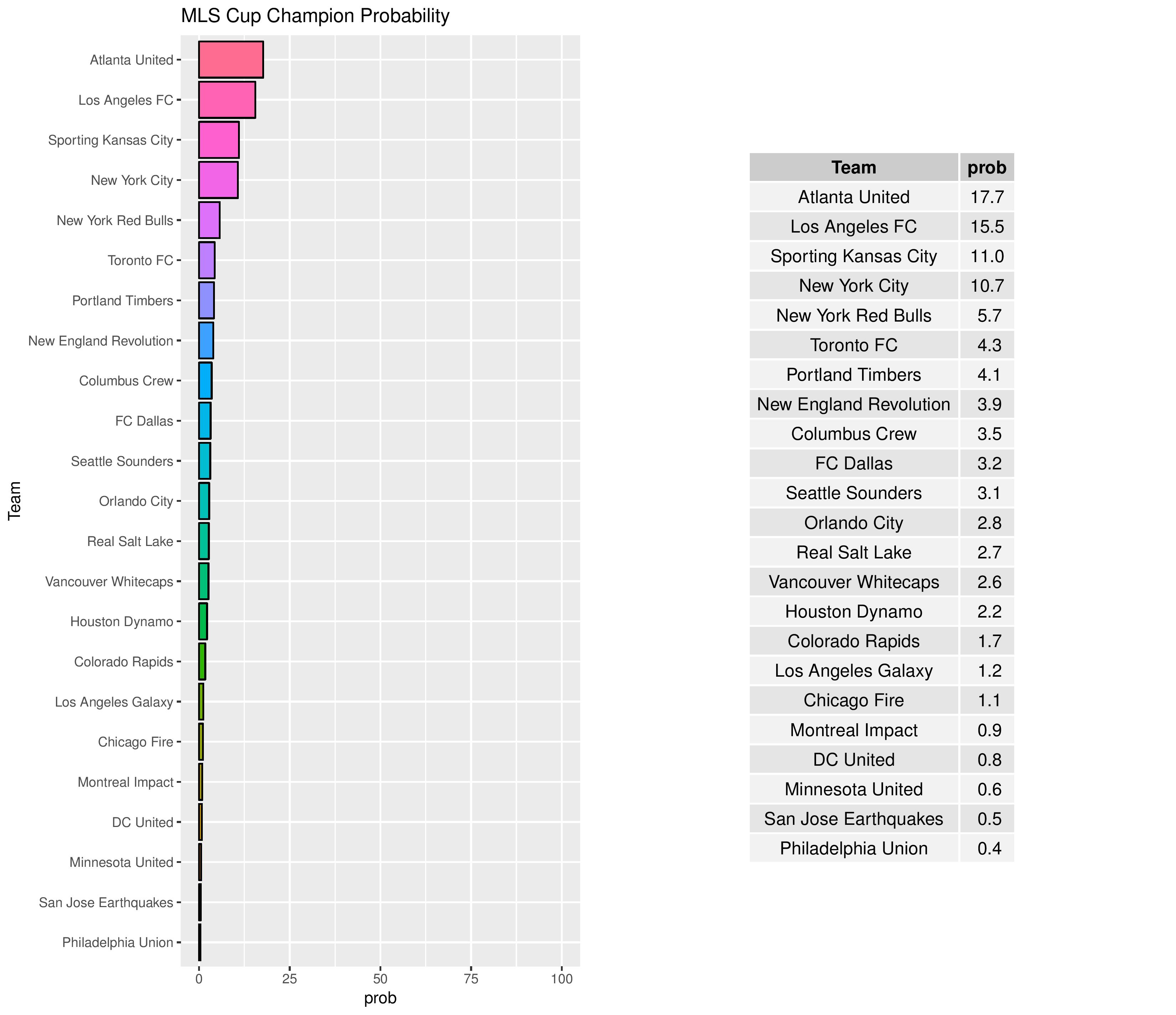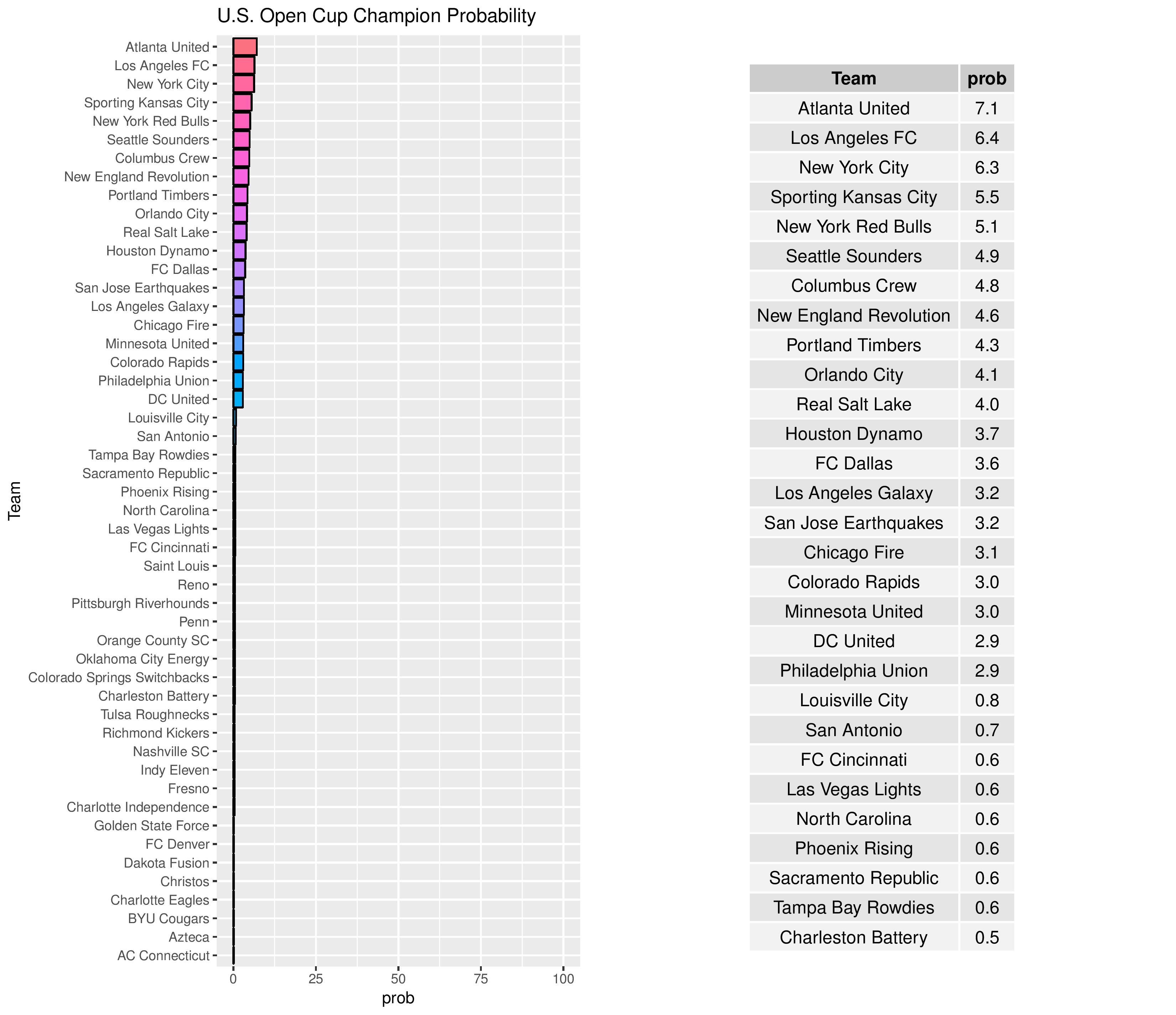 Philadelphia’s chances of having a U.S. Open Cup win decreased from 3.5% to 2.9%.