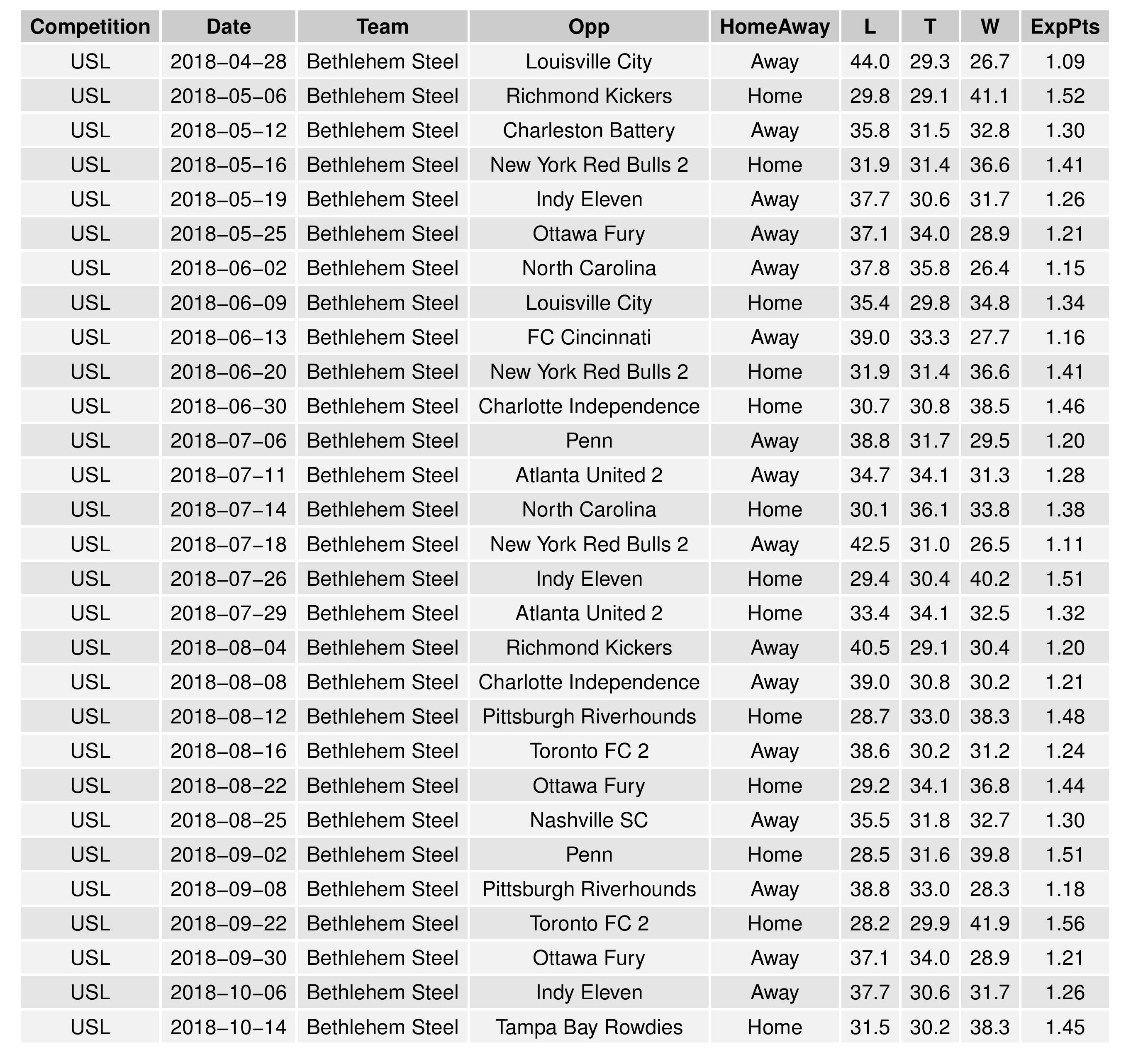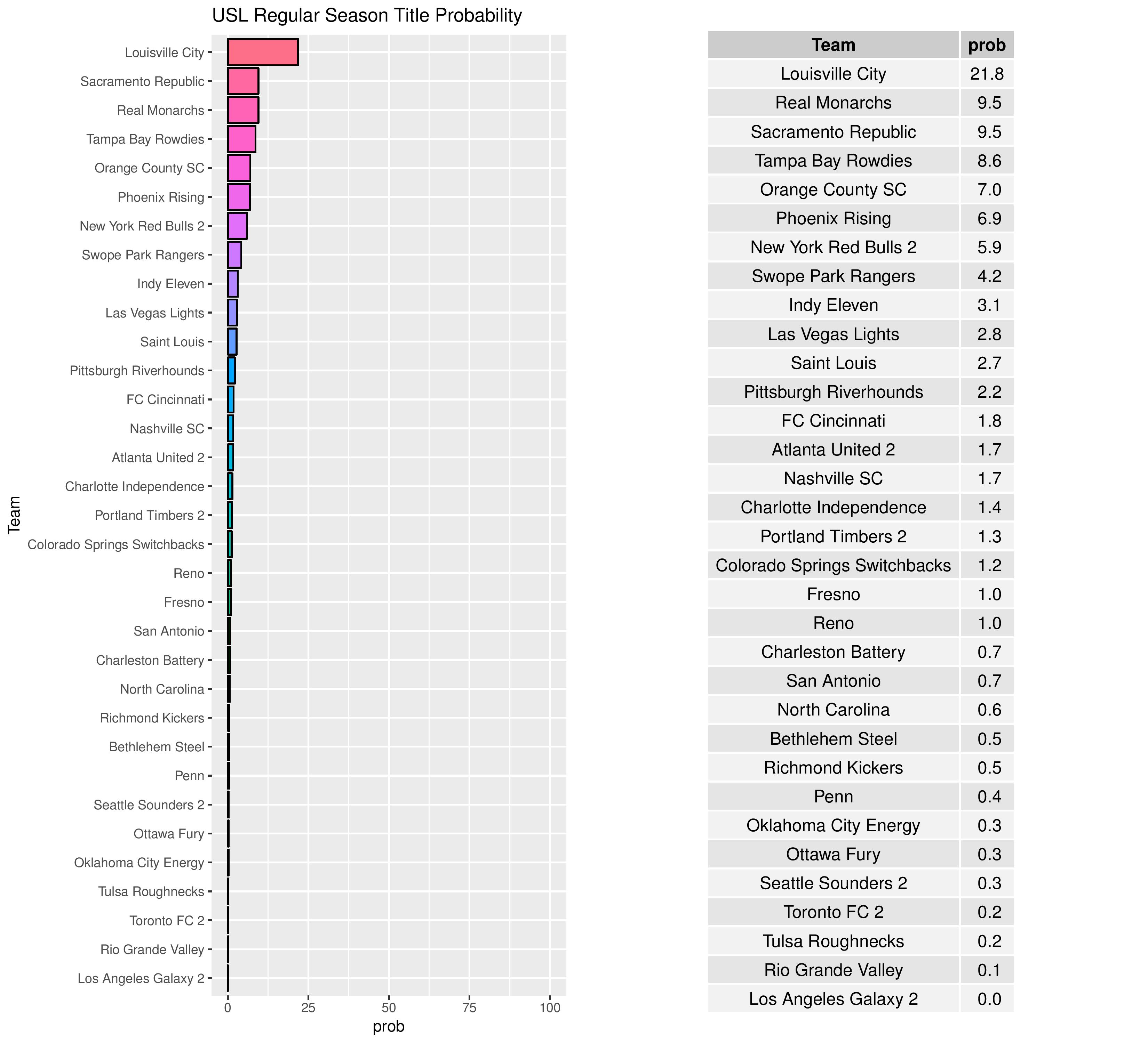 Bethlehem remained at a 0.5% chance of claiming the USL regular season title from the last published forecast.
