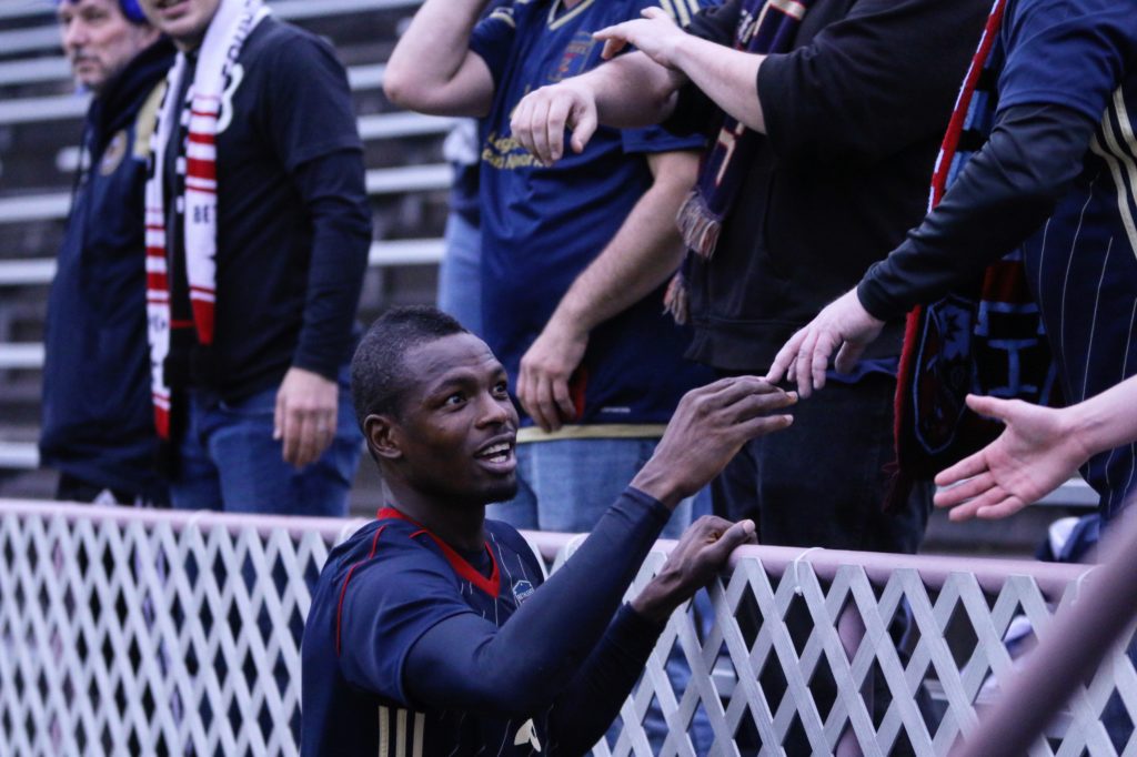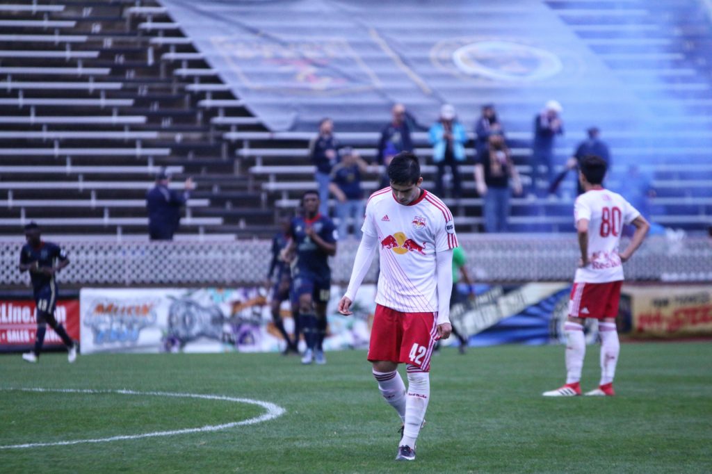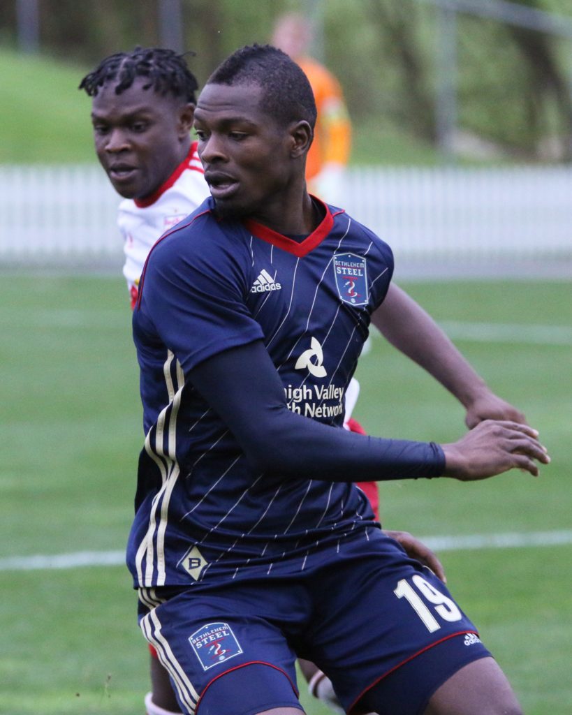 Captain Derrick Jones awaits the opening whistle.Apart from a first minute strike off the bar from Cory Burke, Red Bulls II were on the front foot to start the match.The Steel were able to conjure up a chance and newcomer Michee Ngalina did not disappoint.Oliver Mbaizo wins a header over Red Bulls academy product Ben Mines.Derrick Jones sets the tone with his energy in the midfield.And once more…The ever vocal John McCarthy barks his orders to the backline.Burke imposes his presence on the game……Which came at a cost as he gets fouled by a Red Bull defender.A wonderfully executed counter attack leads to Fabian Herbers extending the Steel’s advantage.This was the match Herbers has needed.Jump ball.Mbaizo attempts to block a cross.It was a frustrating day in Bethlehem for NYRB II.Red Bull puts a shot into the back of the net, only to be ruled offside.Looking to keep up the energy, Steel sub on fresh legs in the form of Tonny Temple.Burke and Jones in mid-discussion.Adam Najem nets a stoppage time goal to seal the match. 3-0 full-time.Cory Burke embraces the fans post match.
