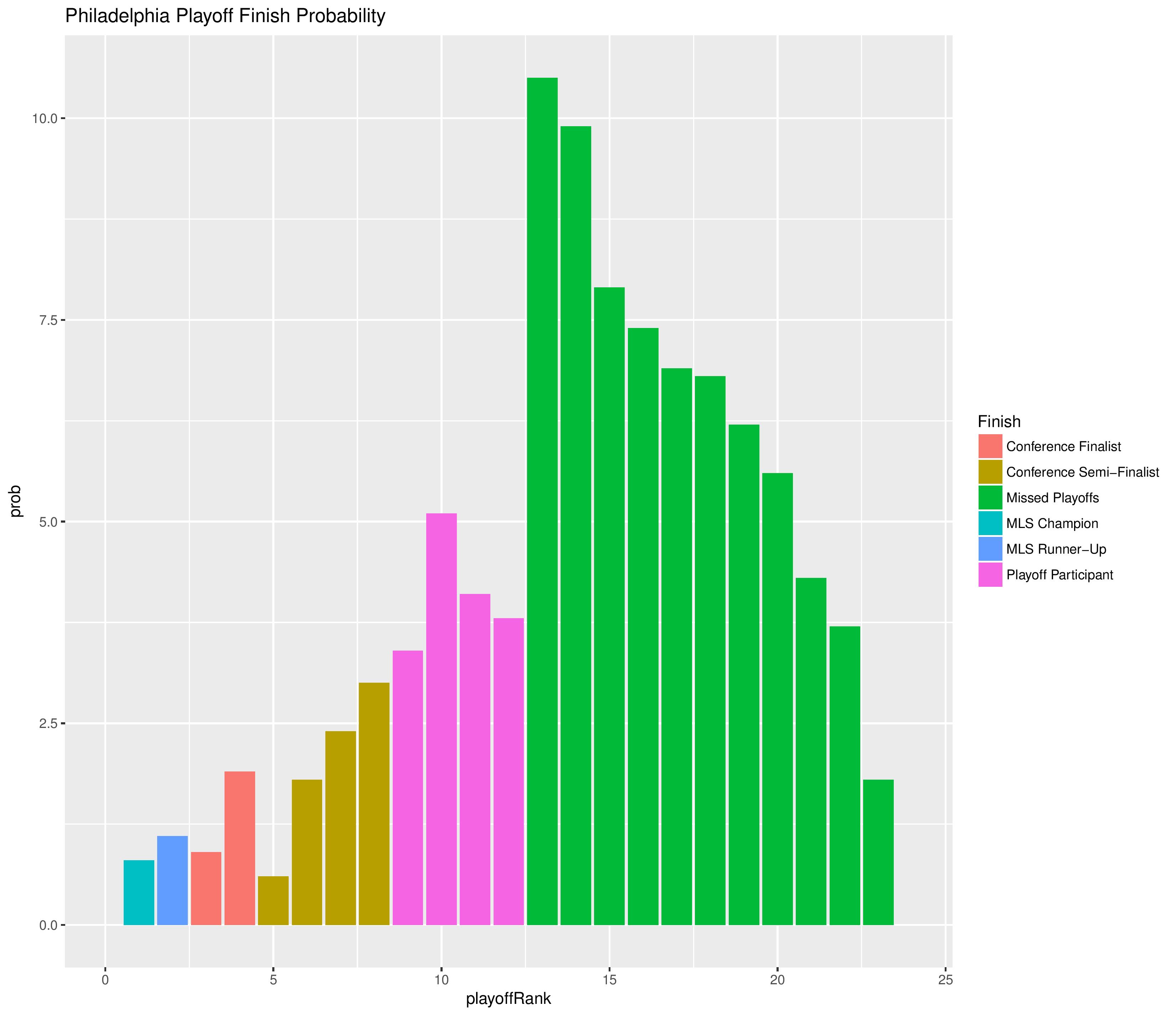 The following are the probabilities of each final playoffs placement for Philadelphia.