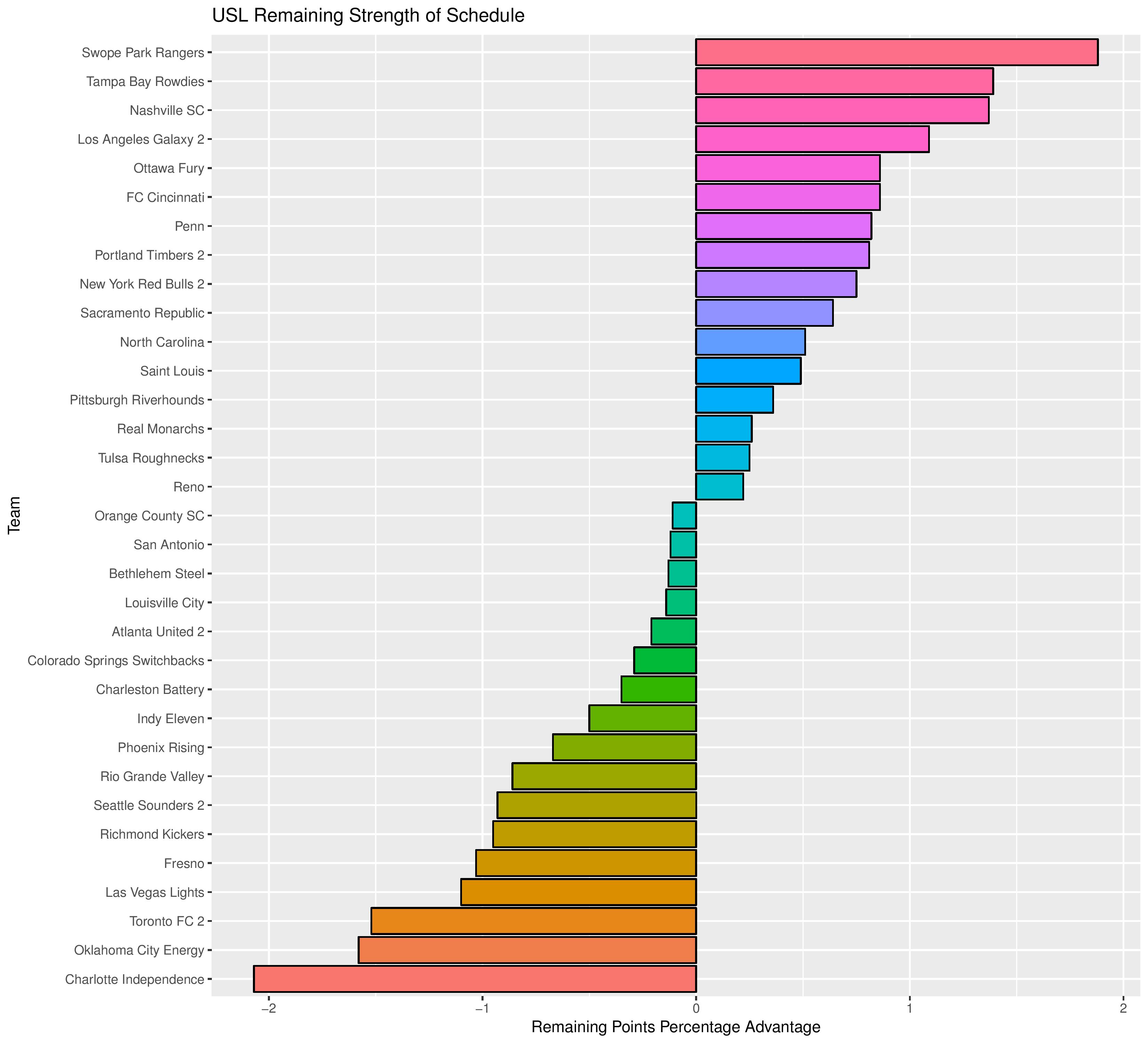 The following shows the difficulty for each team’s remaining schedule. Higher values means an easier remaining schedule.