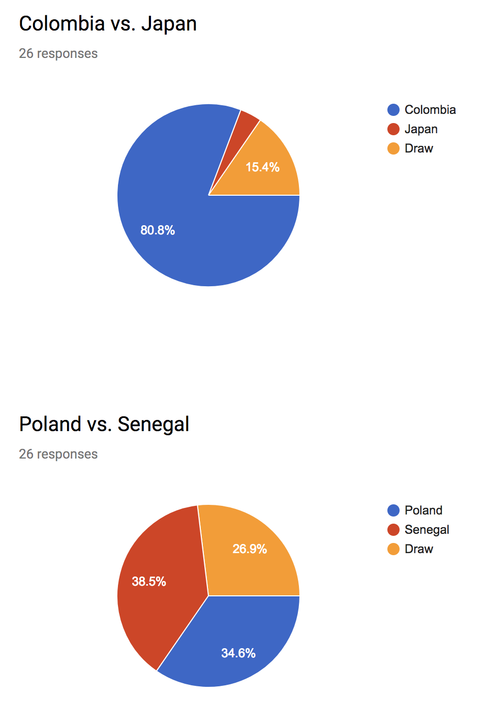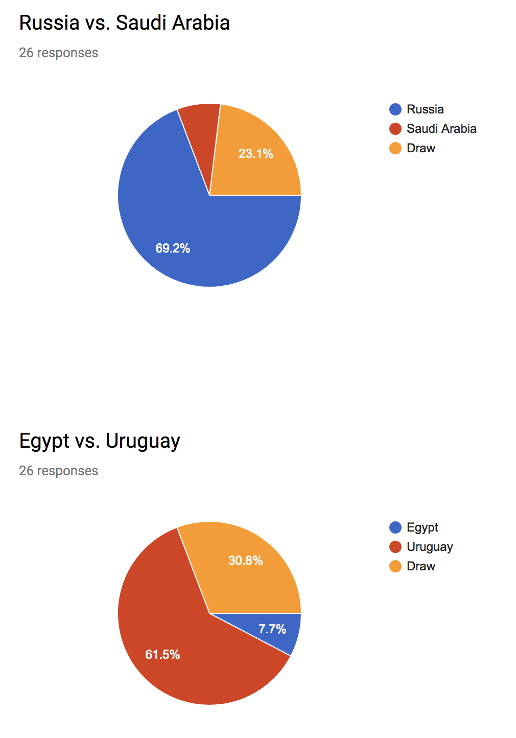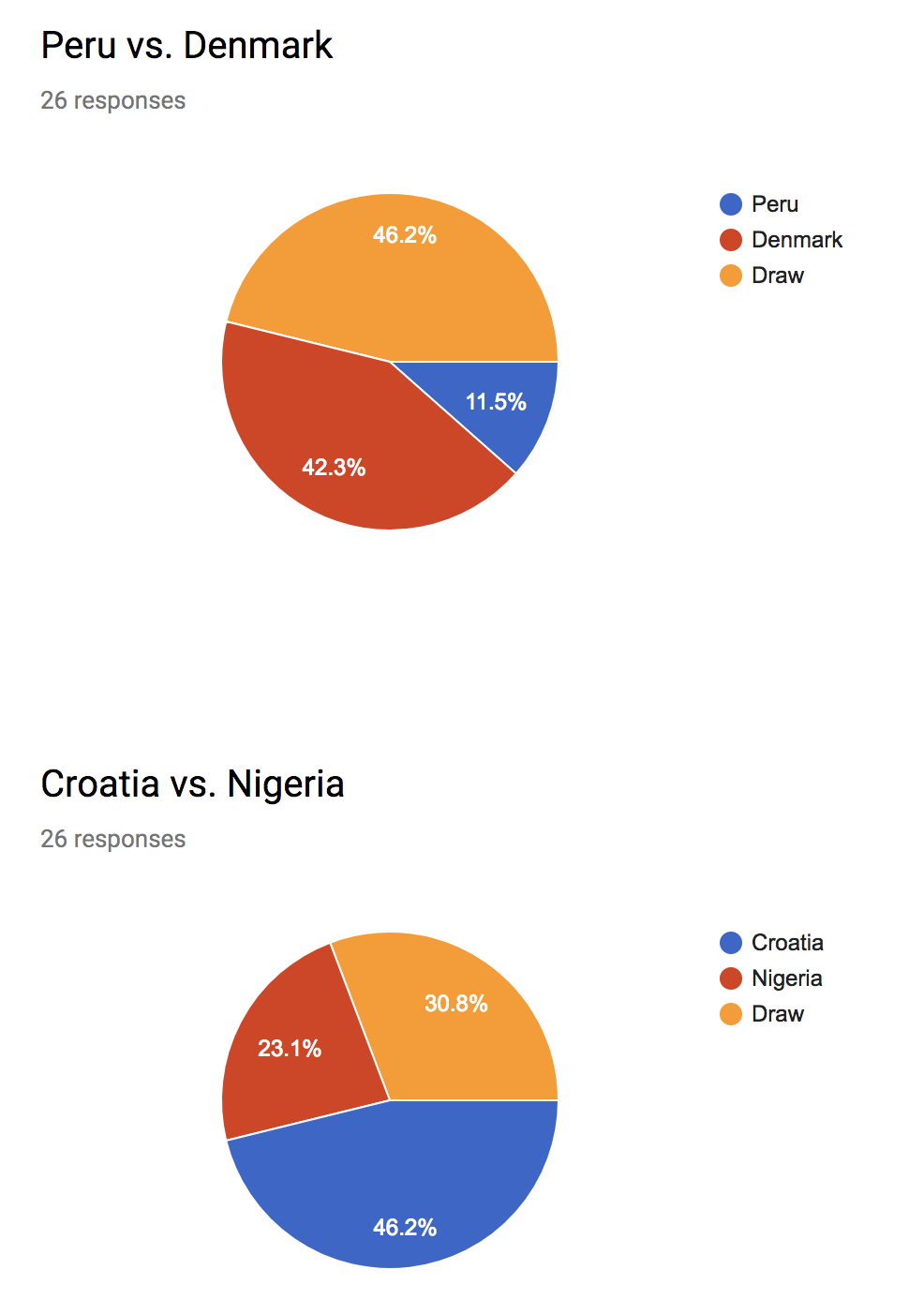 To access each person’s individual picks, you can click here. The charts below show the aggregate picks for each match — you can click on each image to make it bigger.