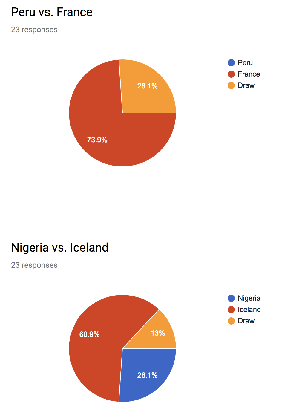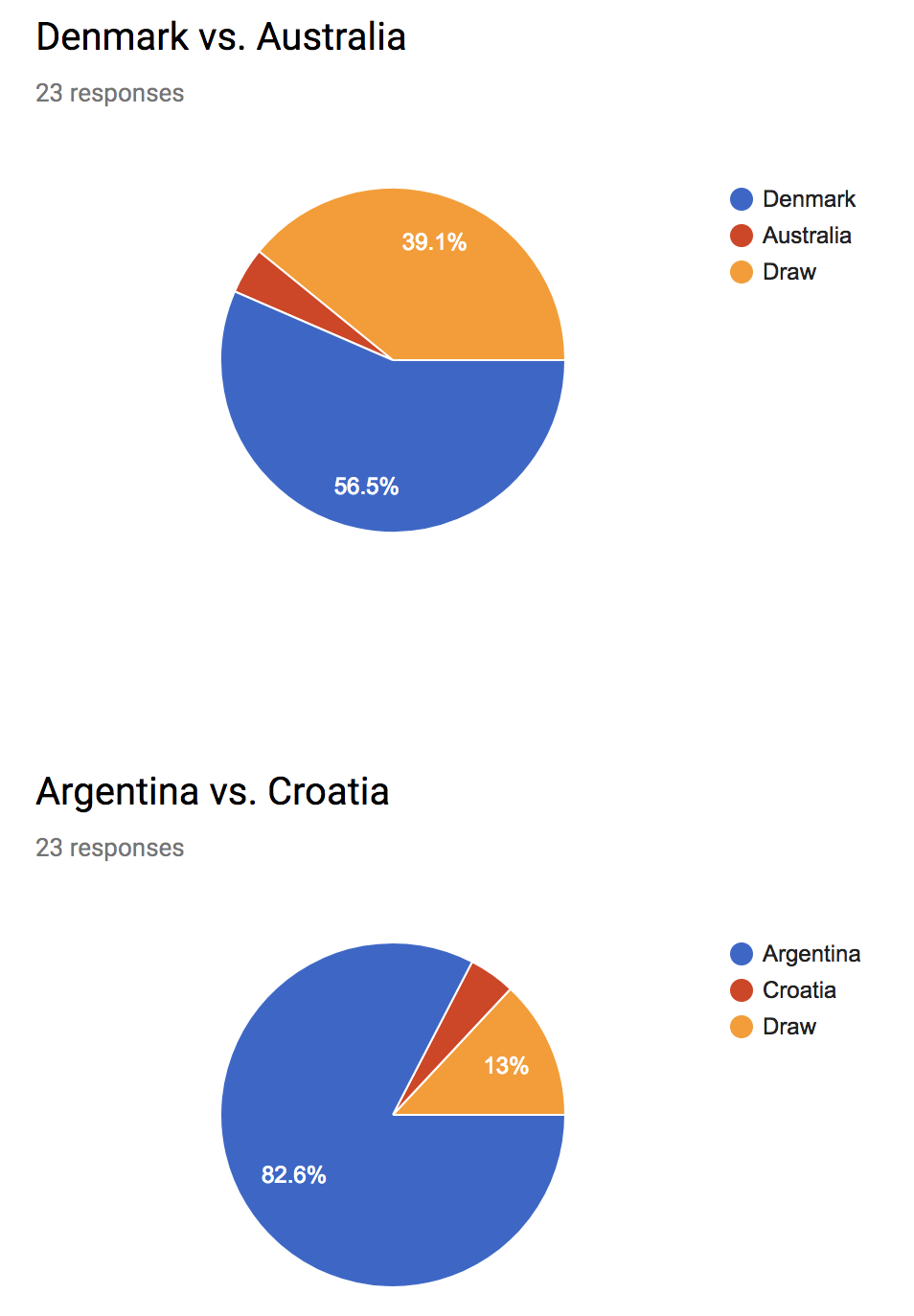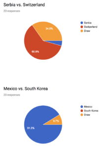 Only one of our experts — Ryan Rose — picked Mexico to topple Germany. Same with the result of yesterday’s Colombia-Japan match, with Gerald van Wilgen the sole entrant to pick Japan.