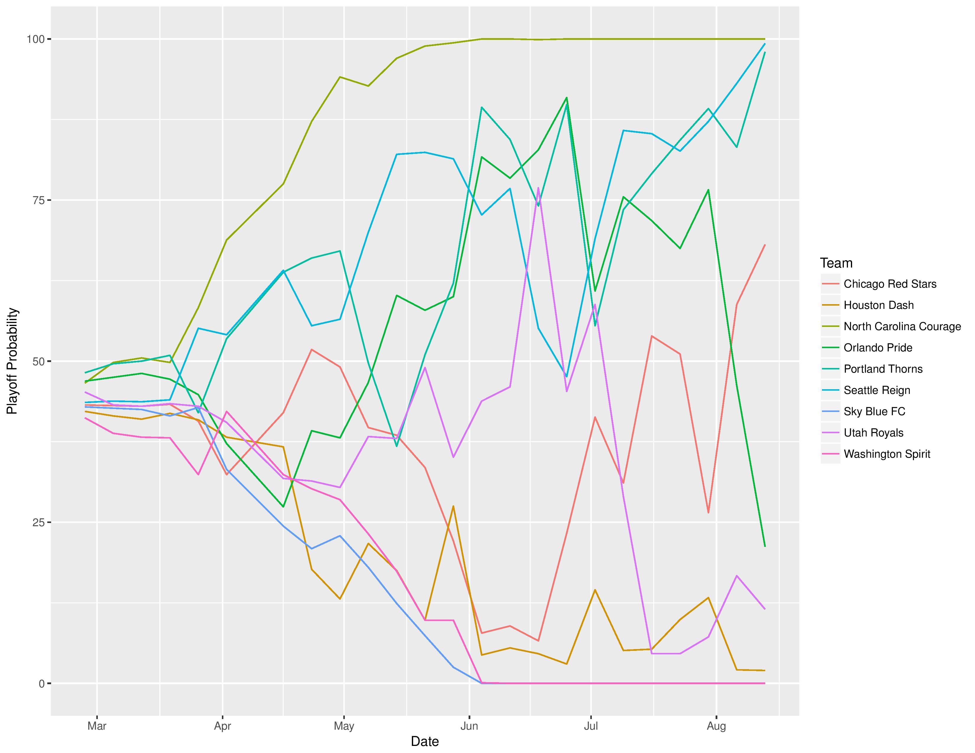 Below are the 2018 MLS season forecasts using data from games through August 12.