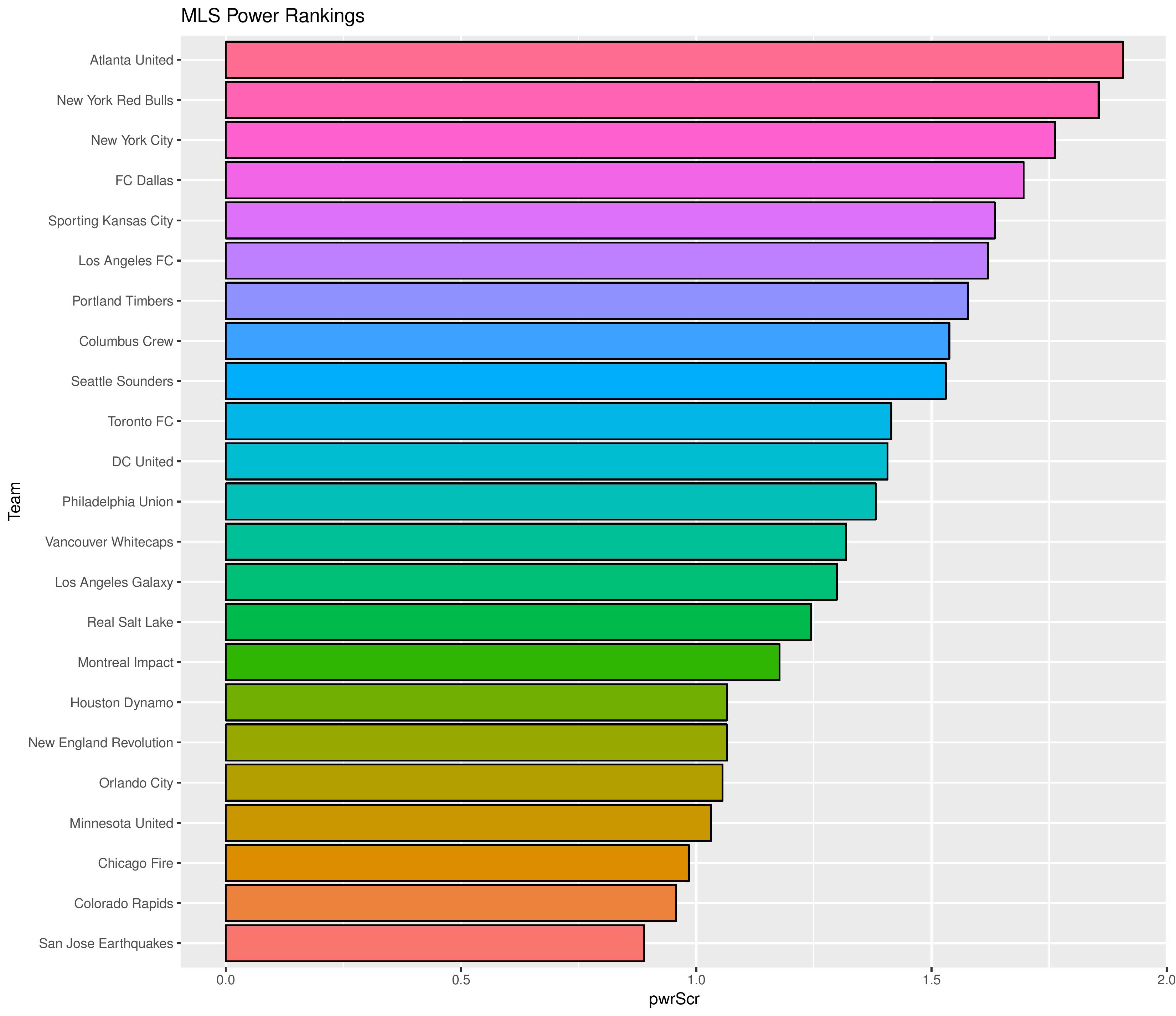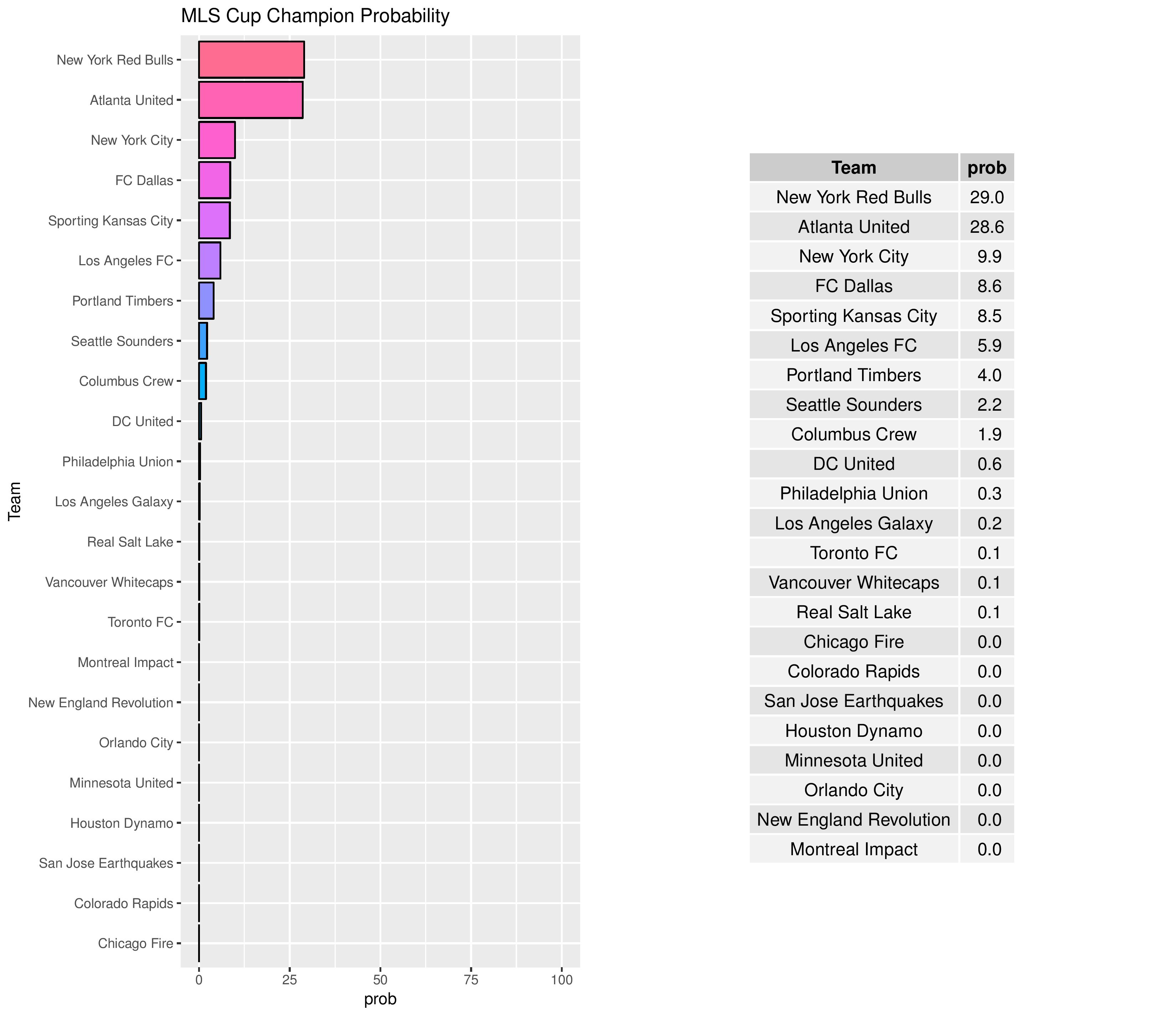 Below are the 2018 MLS season forecasts using data from games through August 19.