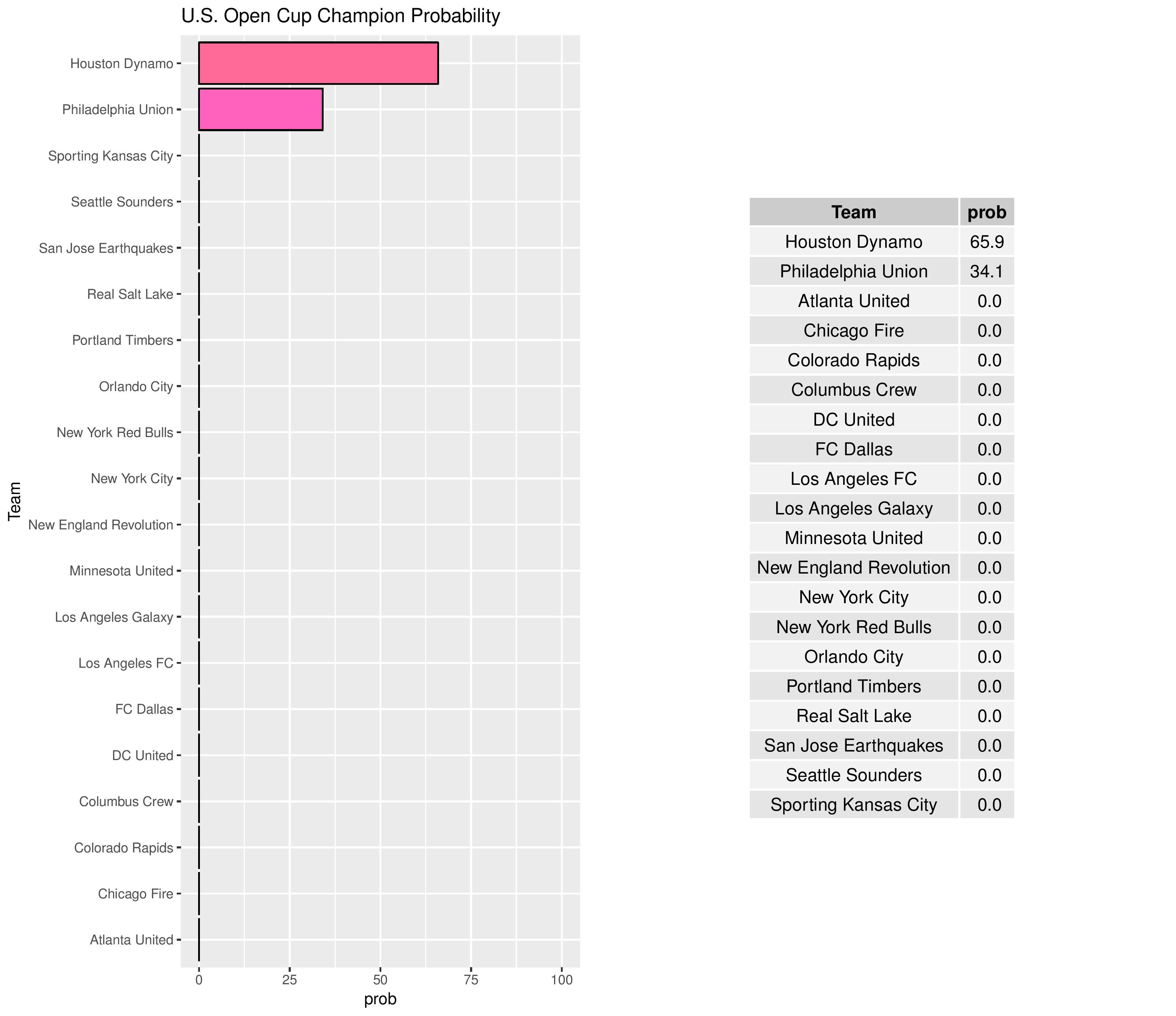 Philadelphia’s chances of having a U.S. Open Cup win increased from 31.7% to 34.1%.