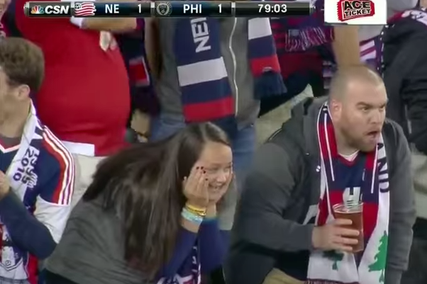 2. P.S. The best part of that New England save-fest was the Revs fan sitting goggle-eyed with his beer in his hand whose picture graces the top of this post. I still remember seeing that guy on the broadcast and cracking up laughing.