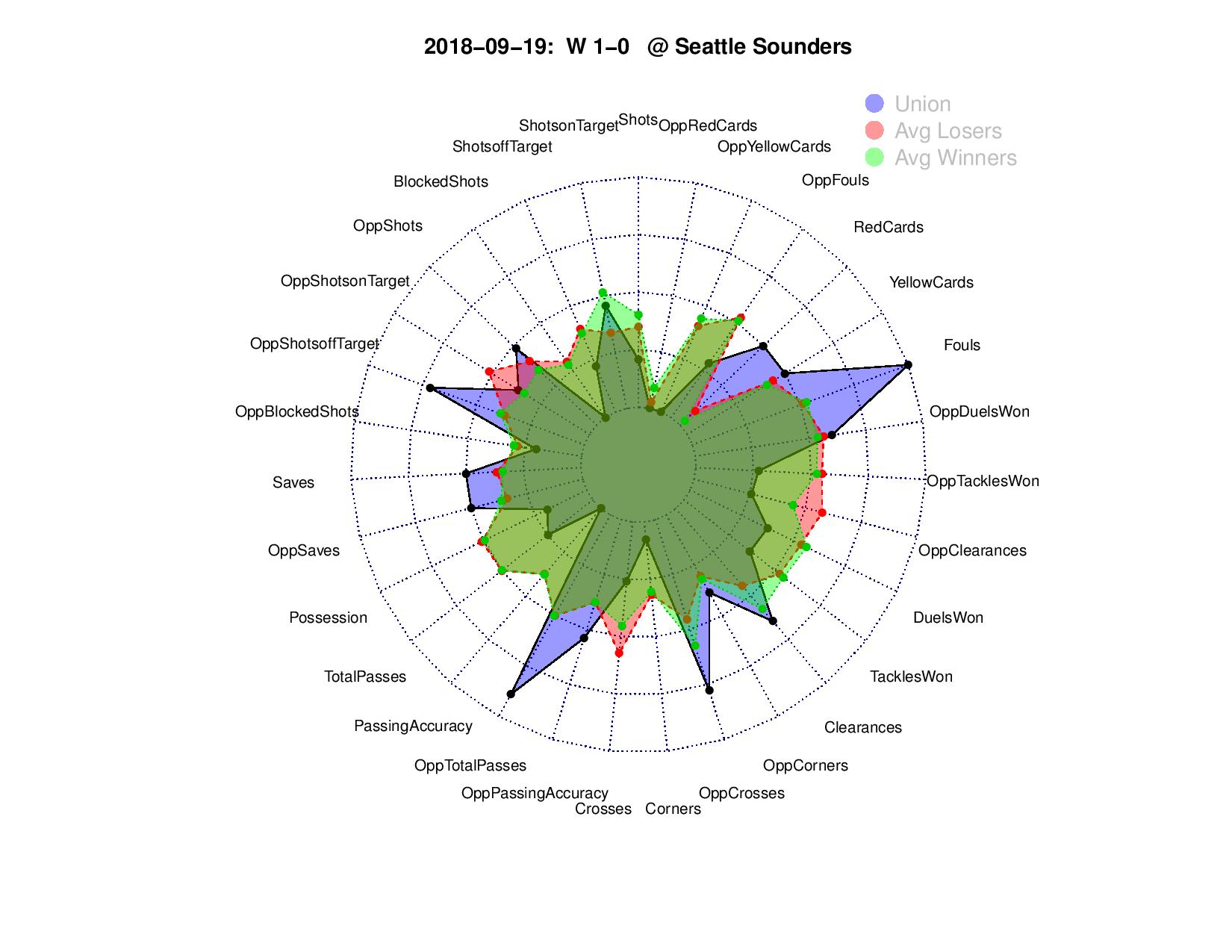 This following chart shows the Union’s stats in recent MLS matches, as compared with typical winning and losing teams.