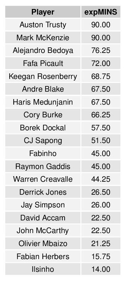 | Toronto FC | East | 1.7 | 0.6 | -0.5 | -0.1 | 2.1 | -1 | 3.1 | -2 | 0.055 | 0 | 0 | 0 | NA | 0 | 0 | 0 | -0.2 | 0.1 | 0.1 |