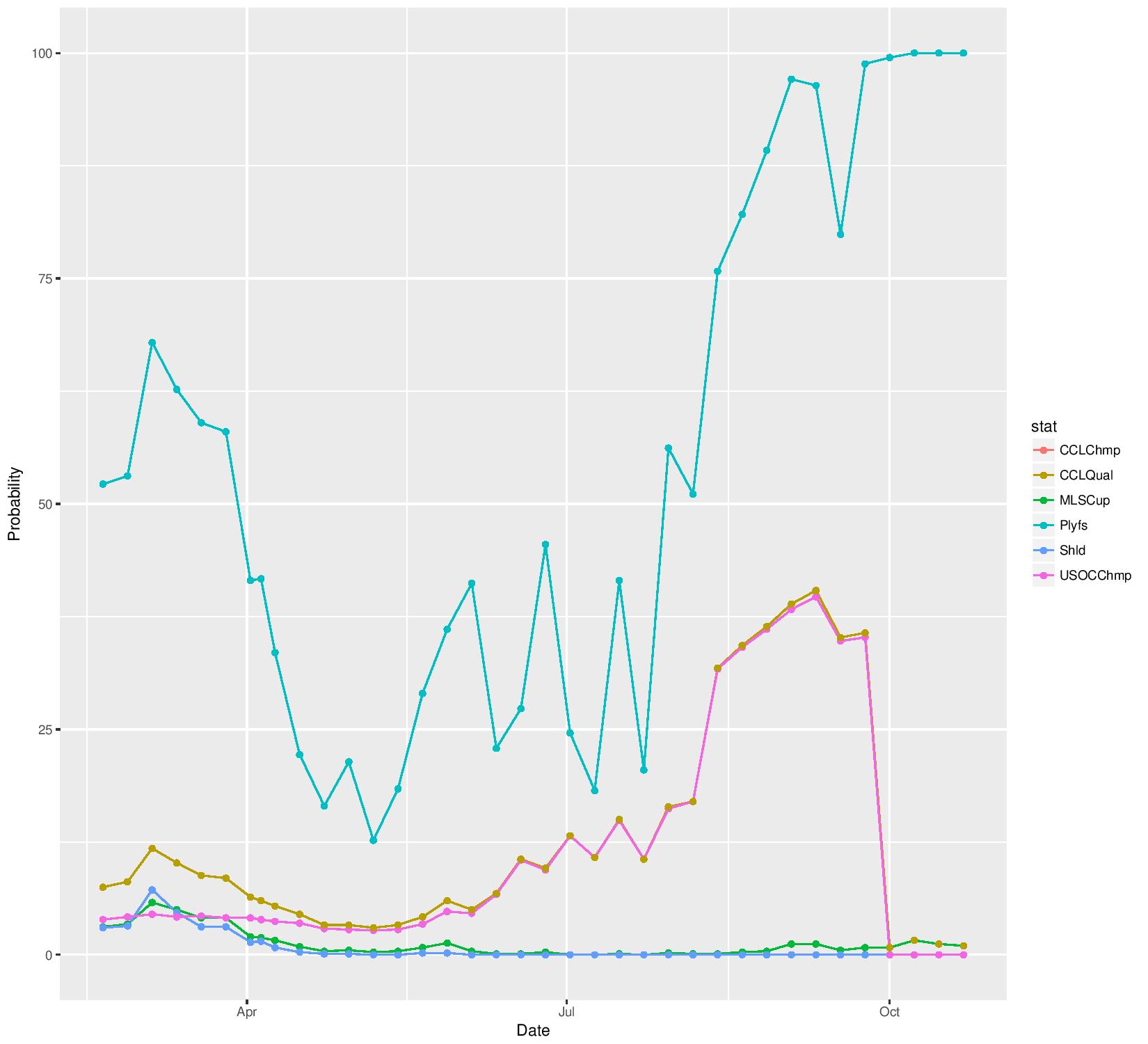 Philadelphia decreased from a 1.2% chance to a 1.0% chance of qualifying for the 2019 edition of the CONCACAF Champions League.