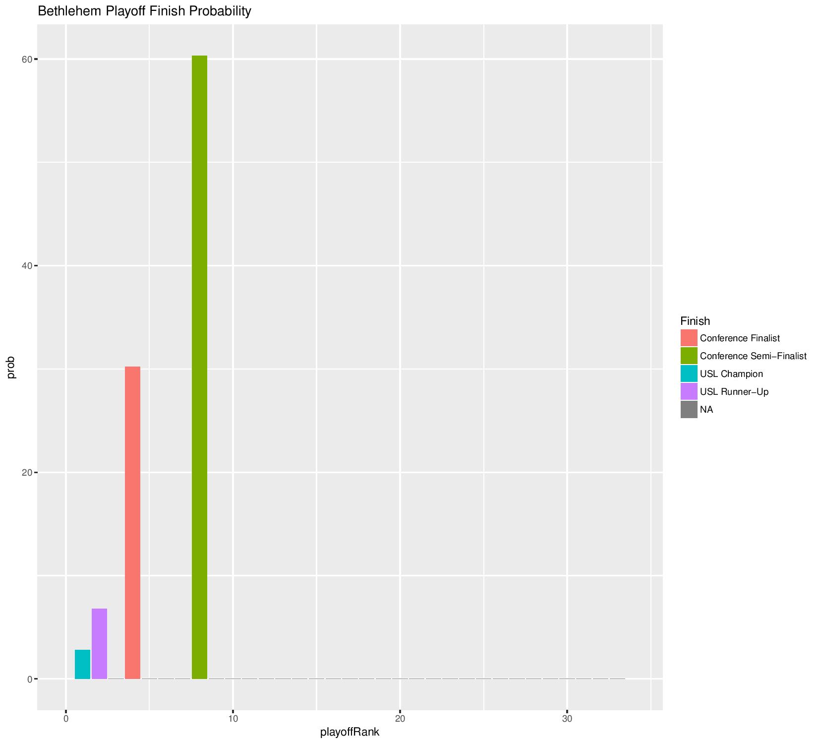 - Bethlehem playoff chances: The Steel now have a 2.8% chance of winning the USL Championship, up from 1.4%.
