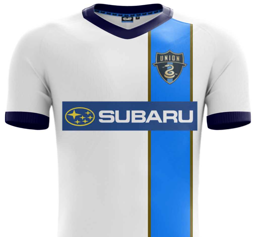 Cyle R.’s “It’s what makes the Union the Union” jersey: This is sharp-looking, and Subaru is a nice choice as a potential jersey sponsor. I think the logo needs to be a little smaller – probably stopping in the middle of the blue stripe, roughly. It has great contrast, and would look great on TV – still white, but distinctive so that when you see it, you know who it is.