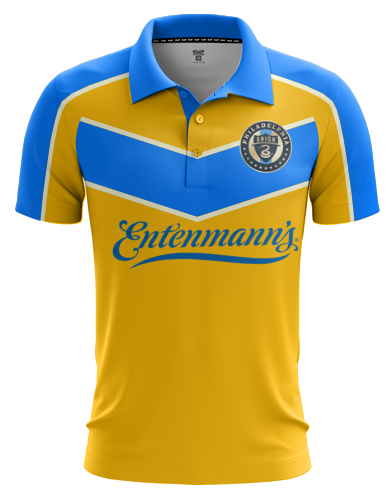 It does so many things the actual jersey won’t do. It’s a change jersey that isn’t white. Instead I went with a gold-dominant design using colors from the flag of Philadelphia. The fact that it doubles as an Eagles throwback is fine too. It continues the Bimbo sponsorship, just using a less troublesome and better-integrated Entenmann’s logo. (In this alternate reality, the primary jersey gets a Thomas’s logo.) And it’s a collar, because we’ve never had a collar.