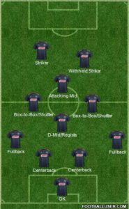 - The two forwards press the opponents’ two centerbacks, the CAM covers the opposing defensive midfielder dropping in for the ball
